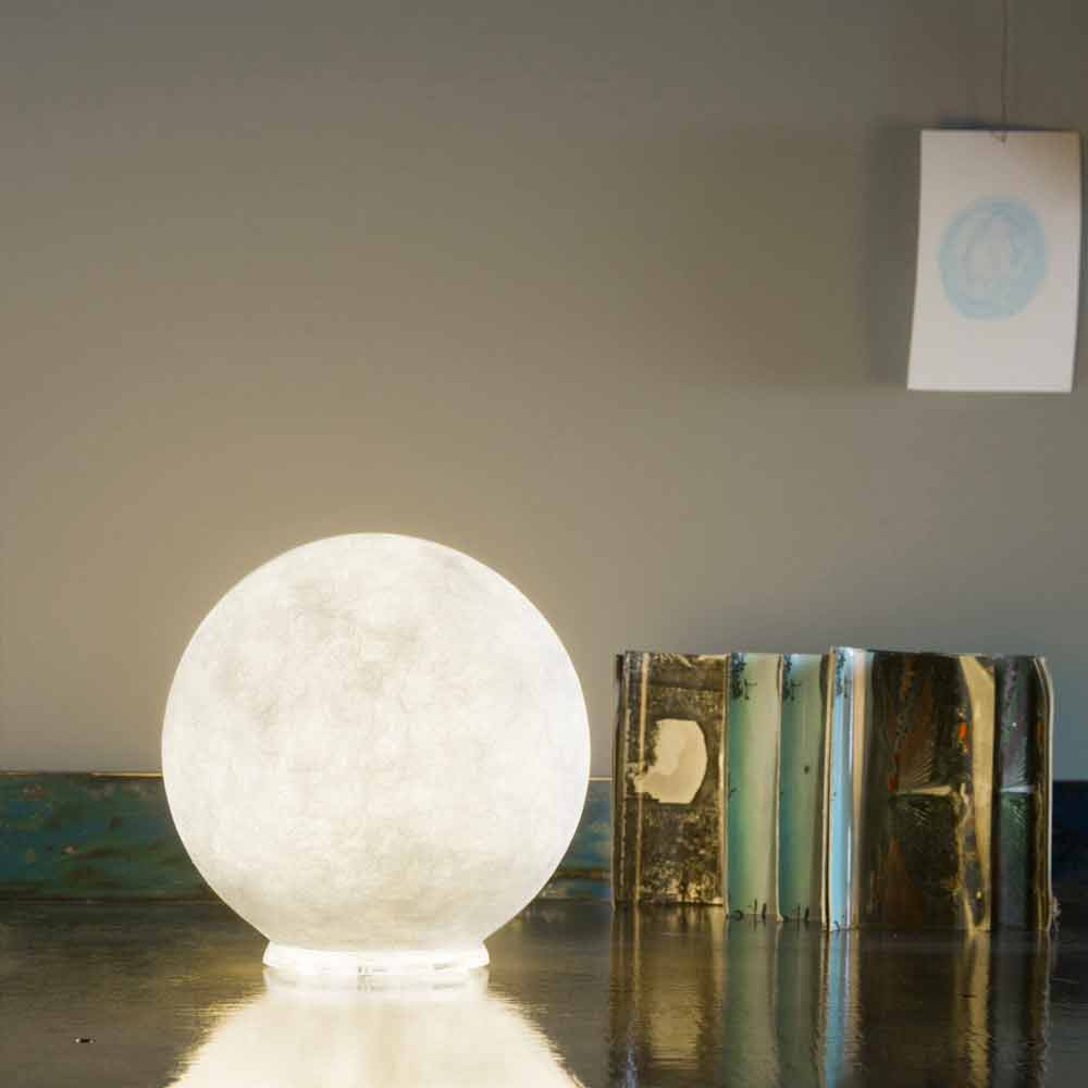 T.moon is the ultra modern design table lamp from the Luna collection by In-es.artdesign which is able to reproduce the magical lunar atmosphere, thanks to the innovative material with which it is made: Nebulite® , a material composed of resin and fiber, whose veins give the lamp this particular "lunar" effect.
