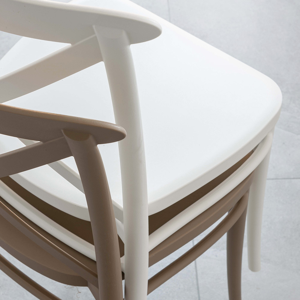 resin reinforced with fiberglass. This product is designed for all those who want to combine functionality with simplicity. In fact, this chair is perfect for inclusion in living areas, kitchens and dining rooms, both internal and external, where daily family moments are experienced and where practicality is essential. Thanks to the materials used for production, we want to guarantee the customer a product that is not only beautiful to look at but also of quality and resistant over time