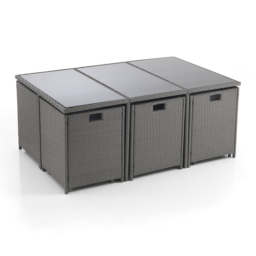 This modular garden set is the essence of versatility and space efficiency . Designed to suit any outdoor setting, the set includes a stylish table and matching seating that combine into a compact, uncluttered arrangement when not in use, transforming into a contemporary design sculpture.