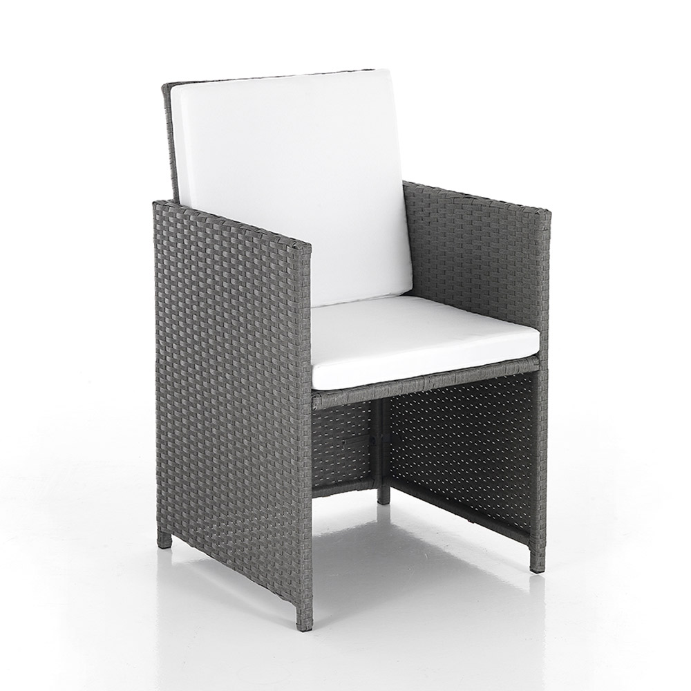 The woven finish gives the set a refined and durable look, ideal for entertaining guests in style or enjoying relaxing evenings under the stars. The cushions offer a comfortable contrast, inviting long periods of relaxation and outdoor conversation.
