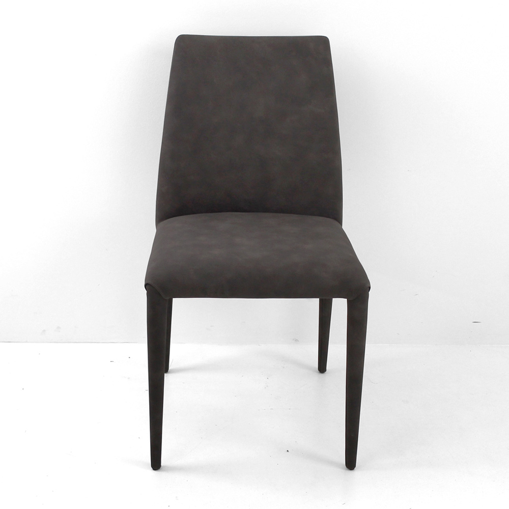 completely covered in earth-colored rebel leatherette. Very elegant chair that gives any living room a