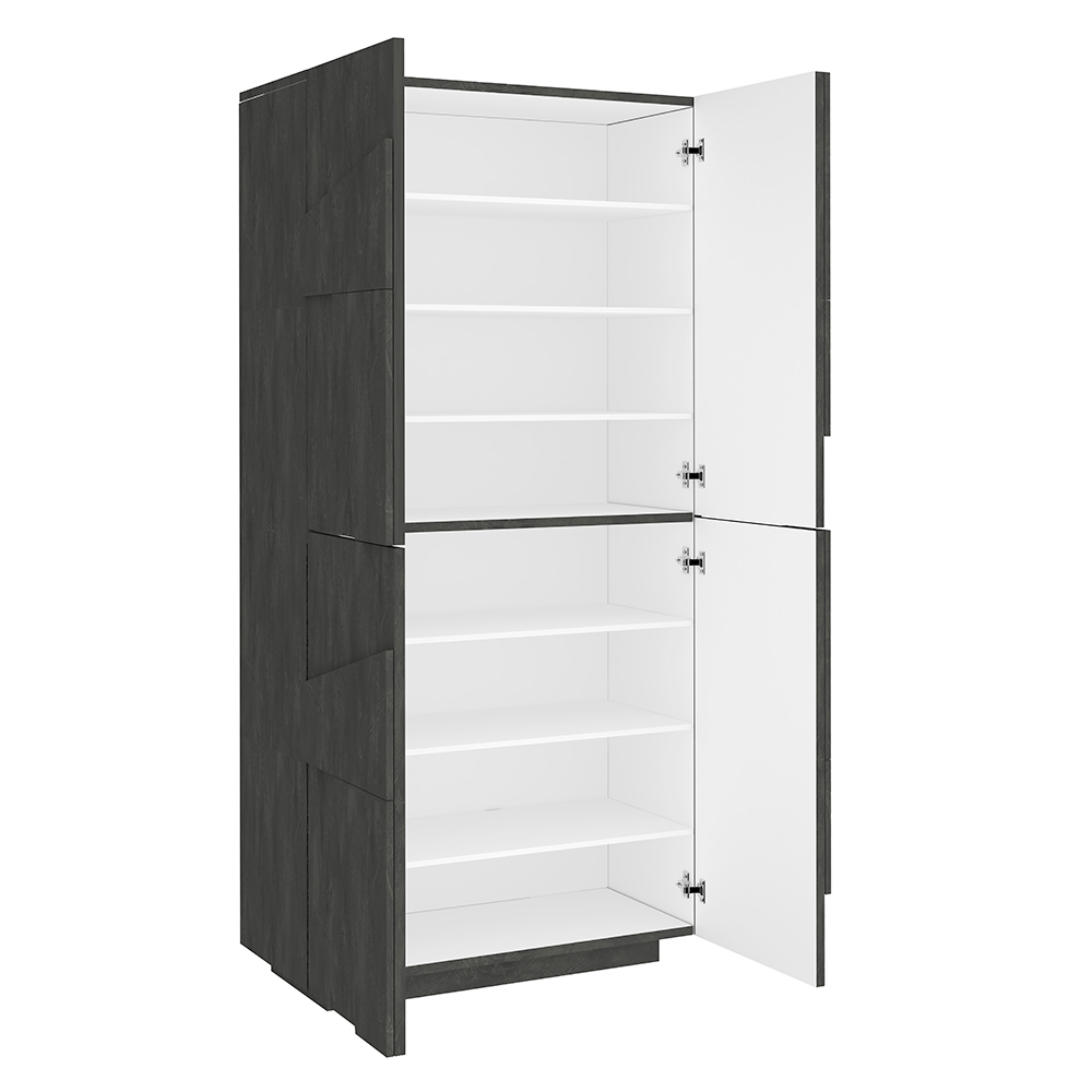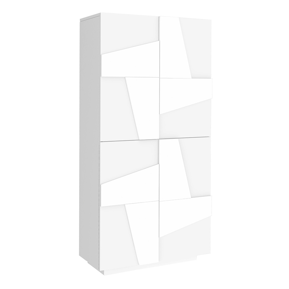 4 hinged doors made special by the geometric carving in relief on the surface, closing