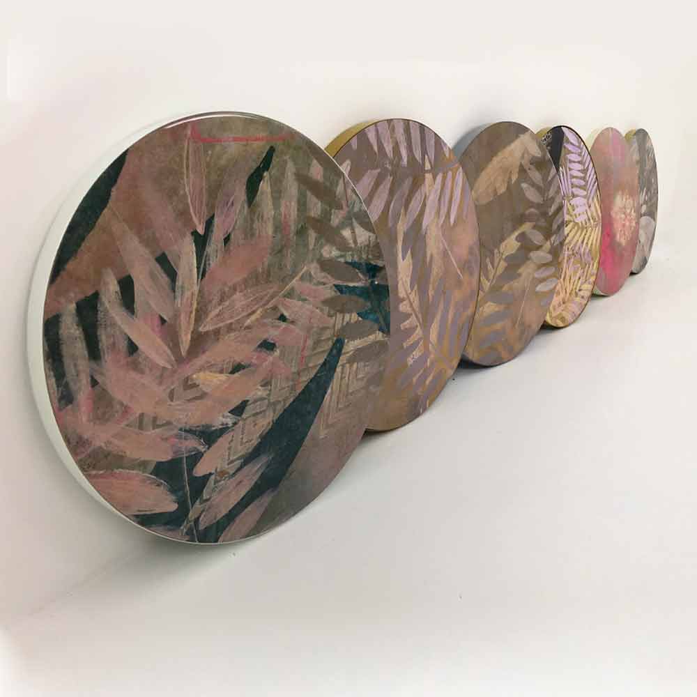 A painting that comes from meditation and a journey, physical in India, but also and above all interior to oneself. The colors chosen for the painting are the primary ones, they are mixed together to create the desired color each time. In a game of shades and surfaces, these paintings tell time in two dimensions: the passing time and the magical time of meditation. Paintings combined with commonly used furnishing objects such as coffee tables to give a magical and unique touch to your living room.
