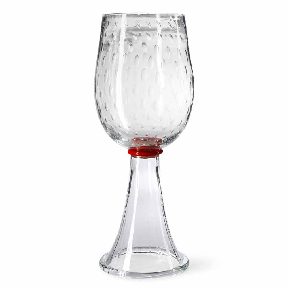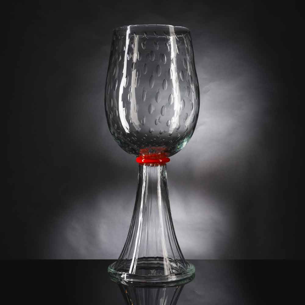 Decorative vase made of transparent Murano blown glass with red central detail obtained through a 100% Made in Italy process . The wonderful elegant design that characterizes this complement represents its real strength allowing it to enrich and personalize any stylistic situation thanks also to the use of Murano glass, a quality and high value material . The particular workmanship that covers the upper part of the vase and the lively and colorful detail positioned in the center underline its sophisticated and modern personality, giving life to an idea of exclusive and classy furniture. An ideal style for the most varied environments, from home furnishings to that of hotels, restaurants, contract areas, spas but also as a setting for events and weddings.