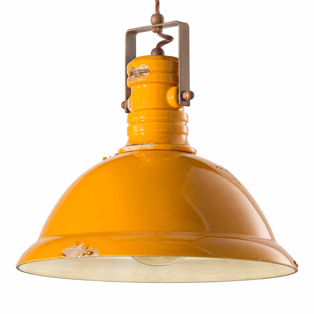 The peculiarity of this lamp lies in the craftsmanship of the ceramic diffuser. The ceramic, in fact, is decorated in such a way as if time had marked its path. The reproduction of the erosion of time combined with the shiny surfaces give that extra value to this suspension. This time-worn effect gives Ruth a sophisticated vintage-industrial style. The metal structure amplifies even more the antique effect.