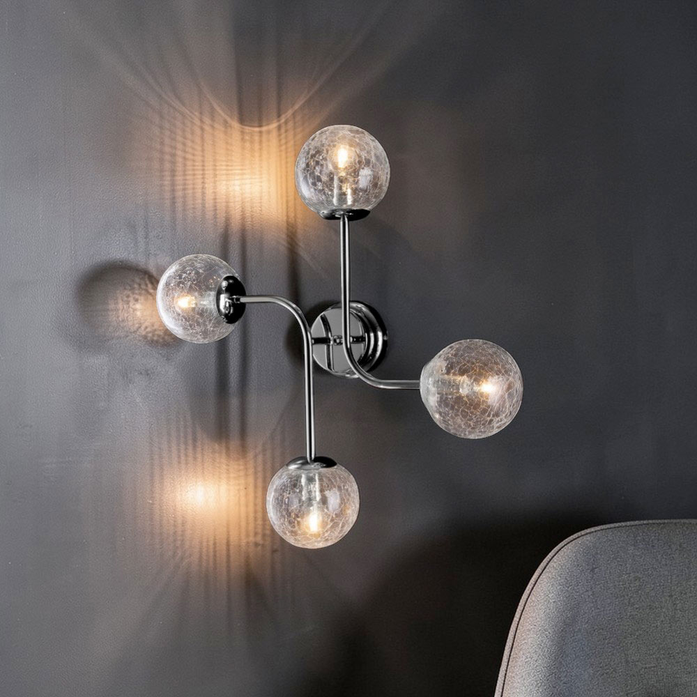 Simple, modern, and visually striking, this designer ceiling light in polished chrome iron is a contemporary lighting solution designed to enhance spaces with understated elegance. The compact structure, with balanced arms and spherical diffusers, creates a refined interplay of volumes and reflections that lends depth to the space.