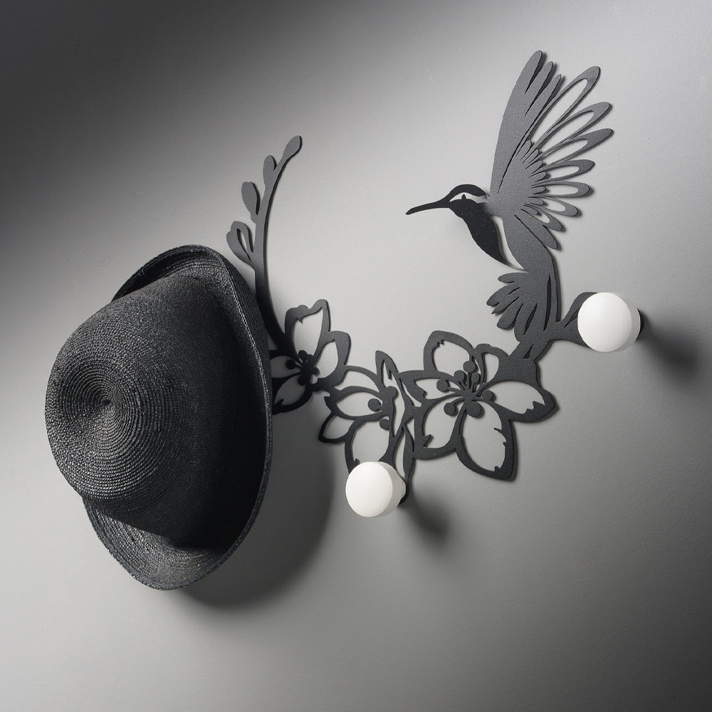 hummingbird placed on a twig , which gives it lightness and beauty. The