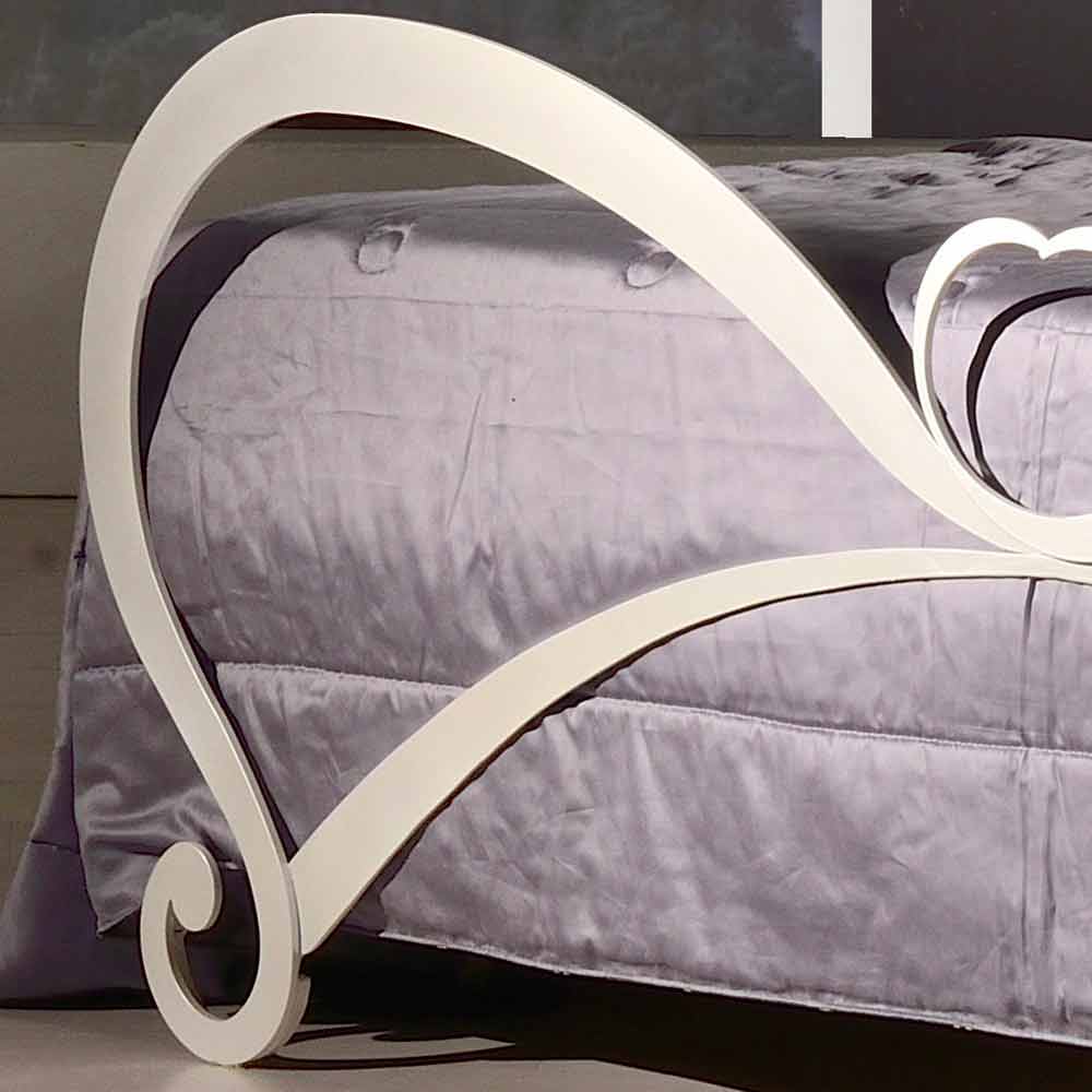 This bed is handmade in Italy by expert crafstmen and it has a pearl finish. The headboard is embellished by crystal decorations.