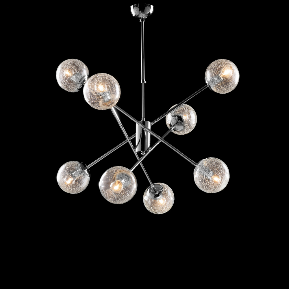 The polished chrome finish enhances the brilliance of the metal and amplifies the diffusion of light, making this pendant ideal for modern living rooms, dining rooms, open spaces, designer settings, and prestigious contract spaces . The luminous spheres complete the aesthetic with a refined and contemporary touch, transforming the light into a true furnishing element.