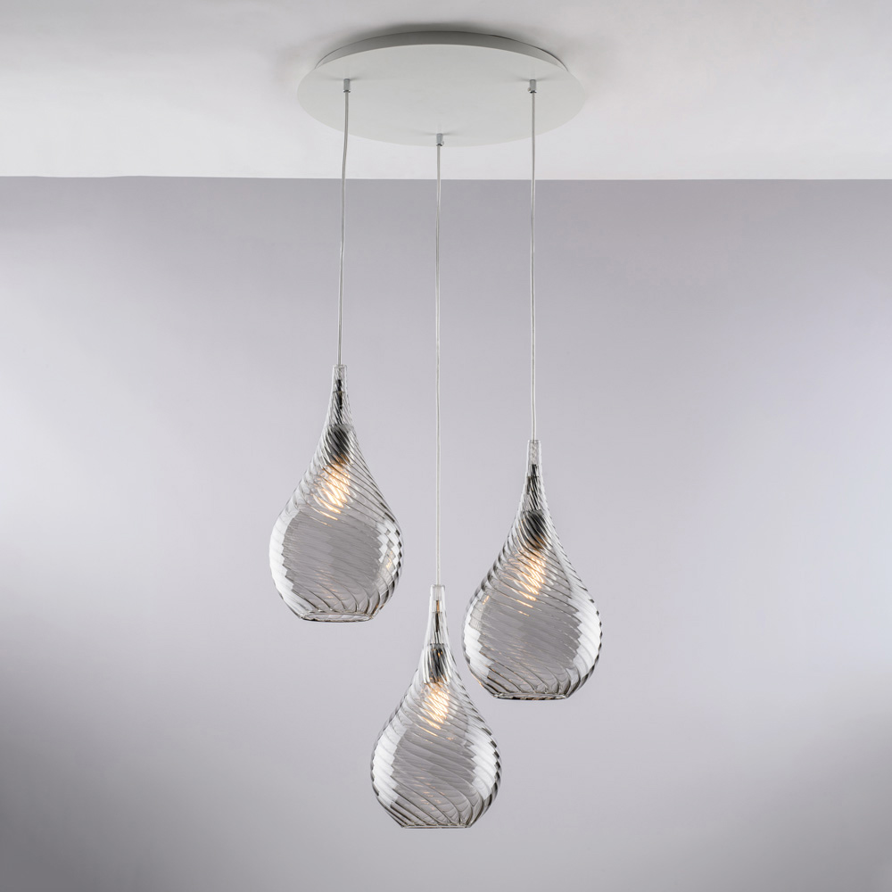 Available in Transparent , Amber , or Gray finishes, this pendant light allows you to customize your space according to your desired style: luminous and light in the transparent version, warm and enveloping in amber, elegant and modern in gray. Perfect for living rooms, dining rooms, kitchen islands, open-plan spaces, and designer contract environments , it interprets luxury in an essential key.