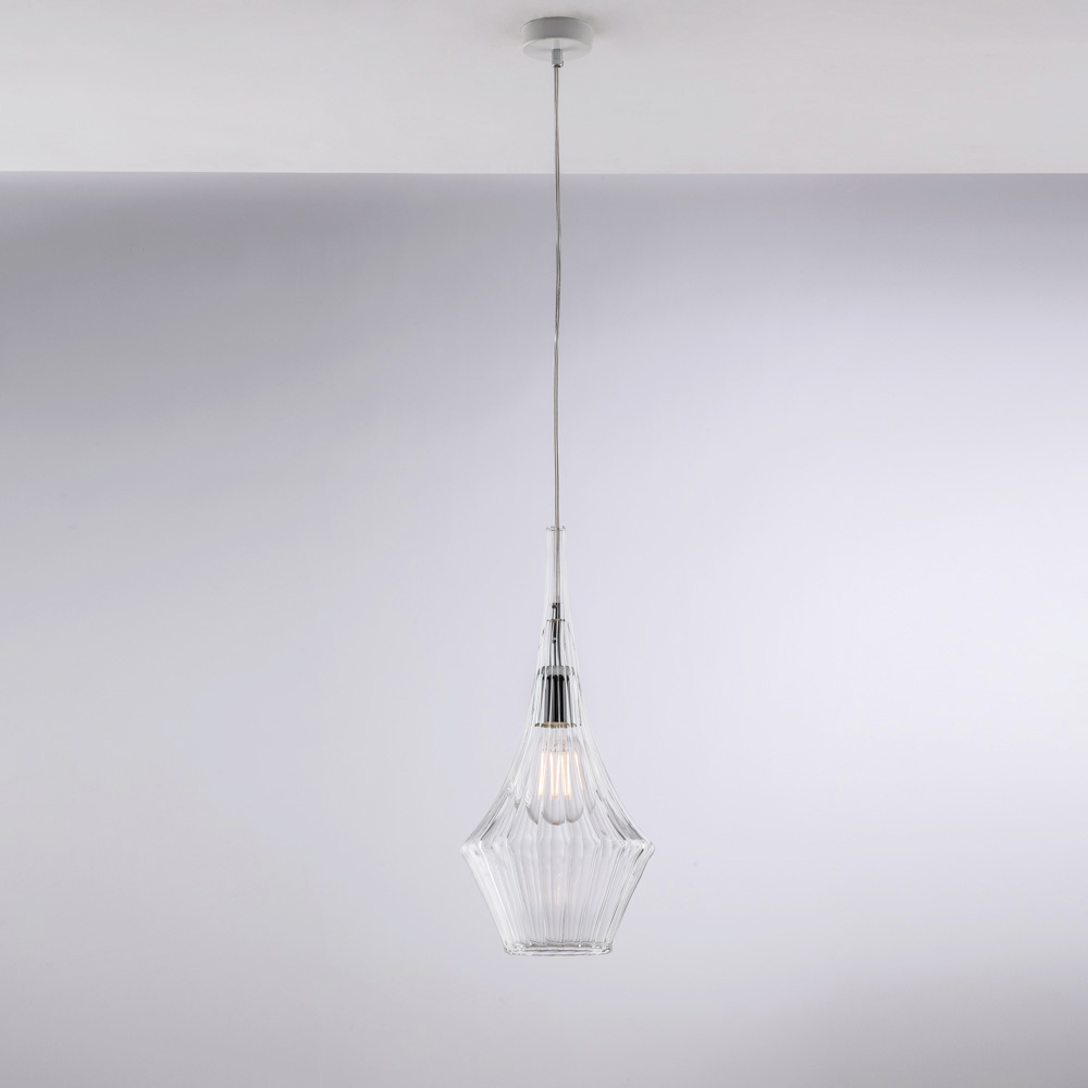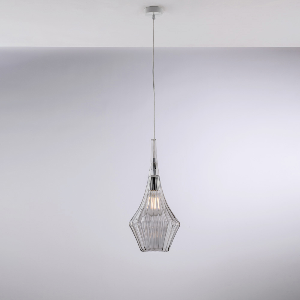 Available in Transparent , Amber , or Gray finishes, this pendant light allows you to customize the style of your space: bright and minimalist in the transparent version, warm and enveloping in amber, modern and elegant in gray. Perfect for kitchens , islands , dining tables , hallways , reading corners , and designer contract spaces , both individually and in compositions.