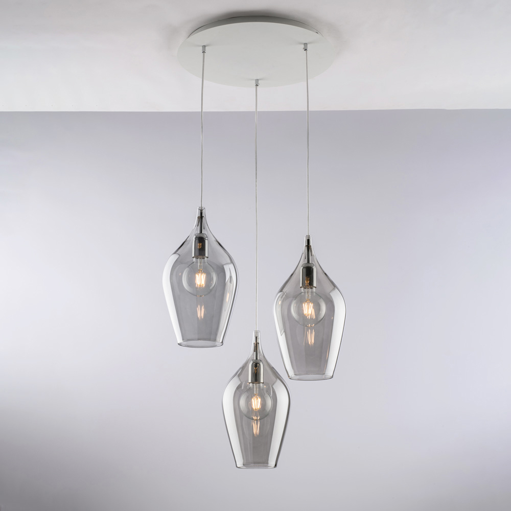 Available in Transparent , Amber , or Grey finishes, this pendant light allows you to customize your space according to your desired style: bright and airy in the transparent version, warm and enveloping in amber, modern and elegant in grey. It is ideal for living rooms , dining rooms , kitchen islands , open spaces , and designer contract environments .