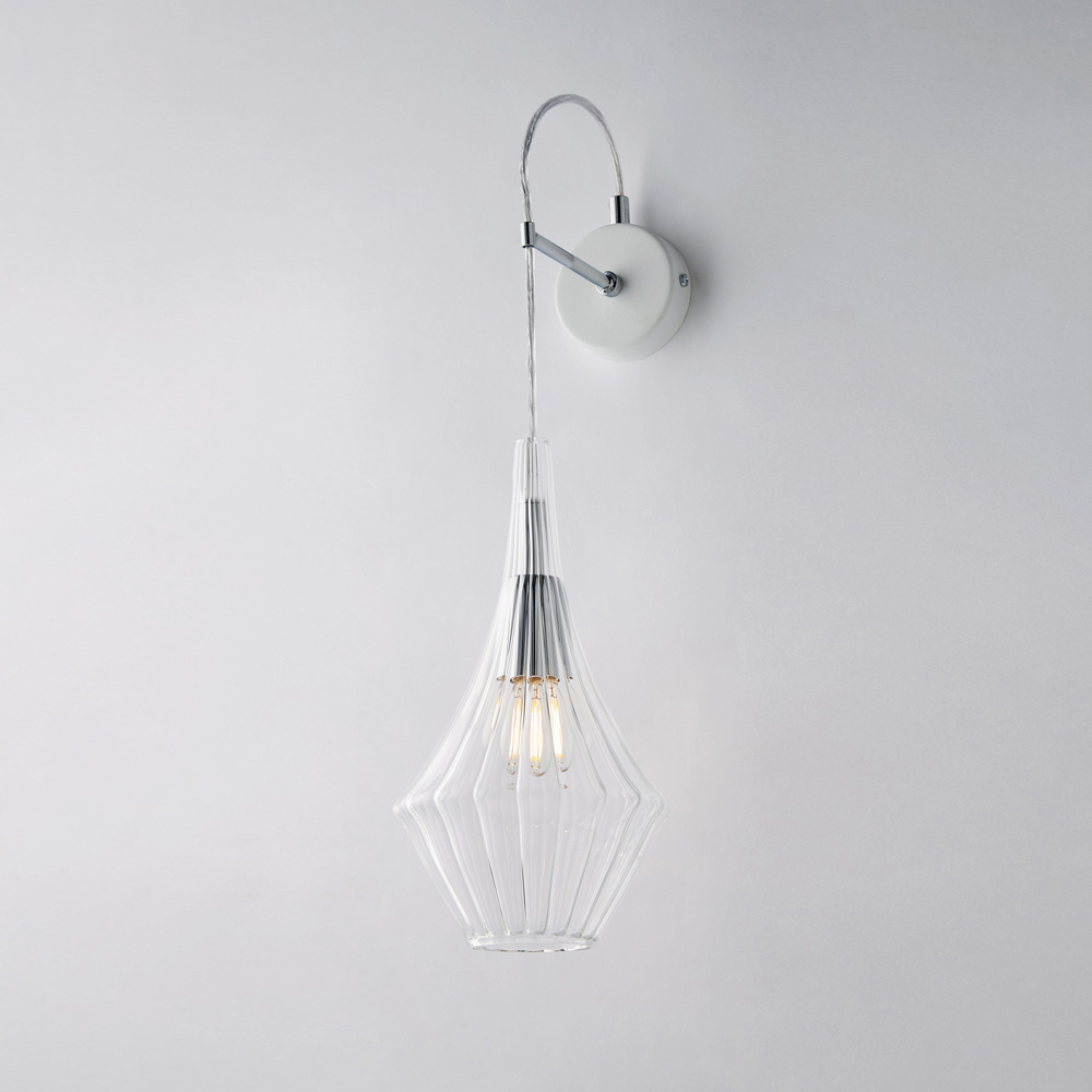 Available in Transparent , Amber , or Gray finishes, this wall light allows you to customize the atmosphere of your space: bright and minimalist in the transparent version, warm and enveloping in amber, modern and elegant in gray. It is ideal for hallways , entrances , bedrooms , living areas , and designer contract spaces , both as a single light point or in a composition.
