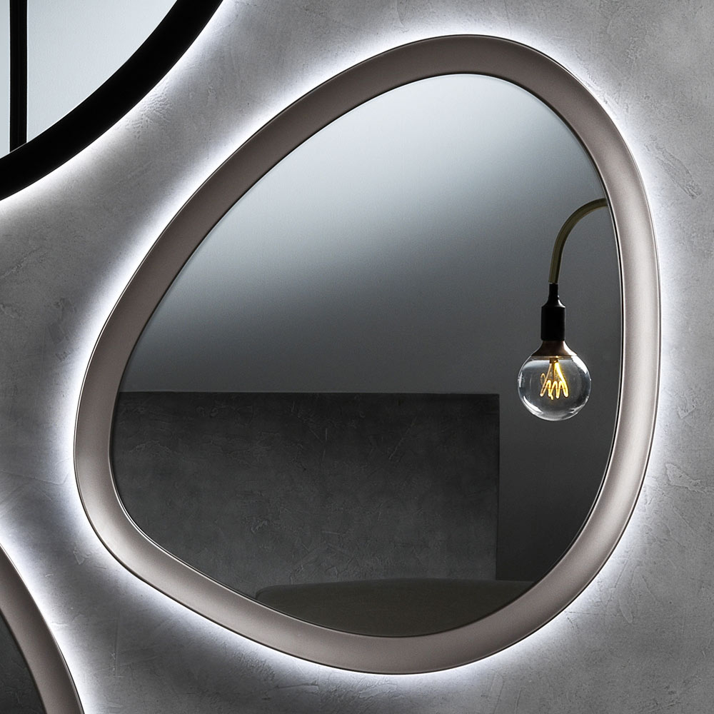 Backlighting is not only an aesthetic detail, but also a source of ambient light that adds depth and warmth to the environment, creating a welcoming and relaxing atmosphere. This mirror is perfect for those who want to add a touch of unique and personal design to their home, combining beauty and functionality in a sublime way.
