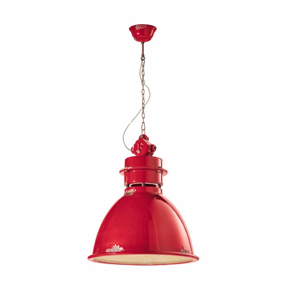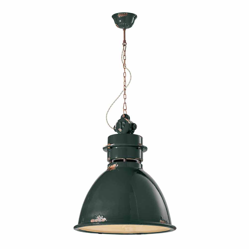 The peculiarity of this lamp lies in the craftsmanship of the ceramic diffuser. The ceramic, in fact, is decorated in such a way as if time had marked its path. The reproduction of the erosion of time combined with the shiny surfaces give that extra value to this suspension. This time-worn effect gives Katie a sophisticated vintage-industrial style.