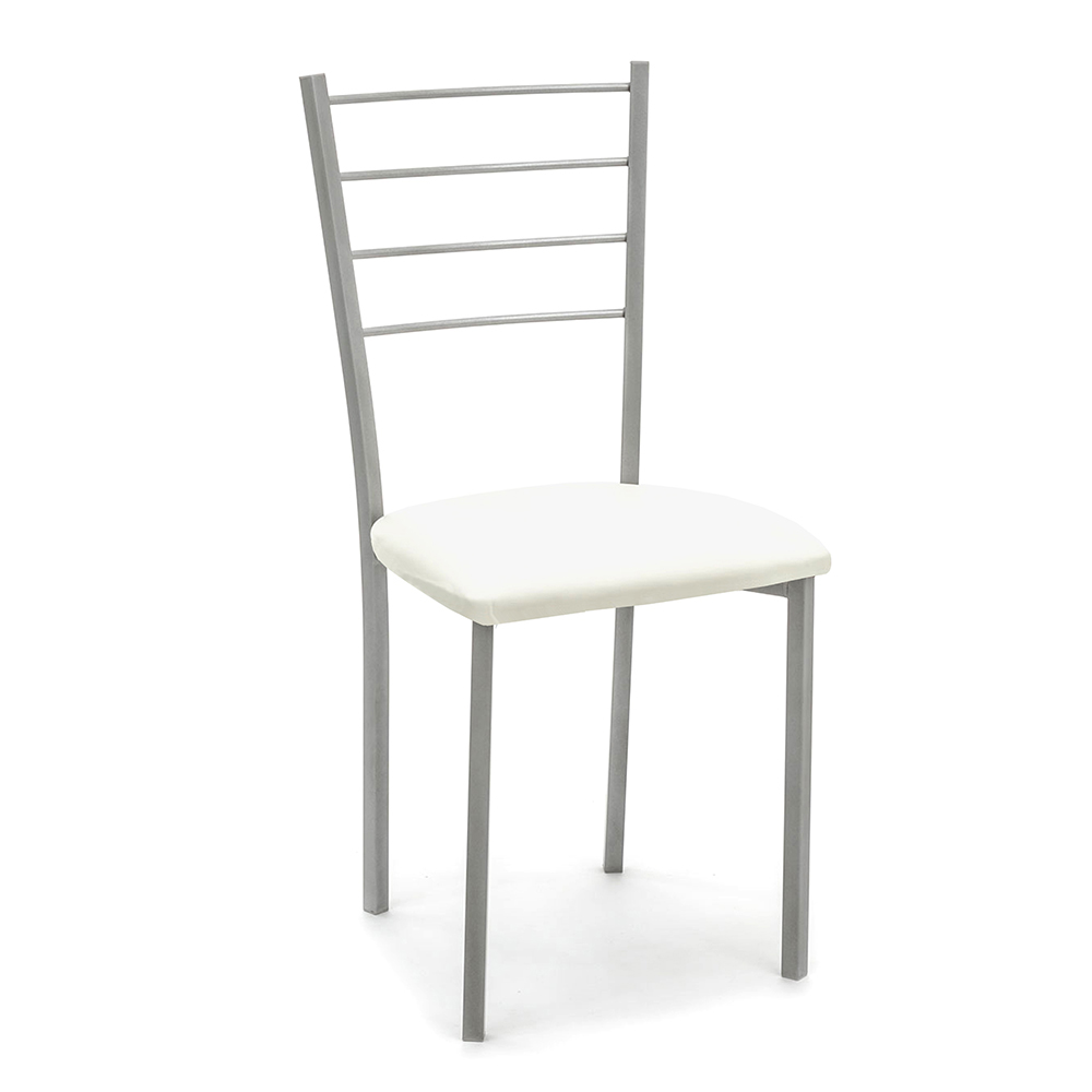 - dove gray synthetic leather seat with dove gray painted metal legs.