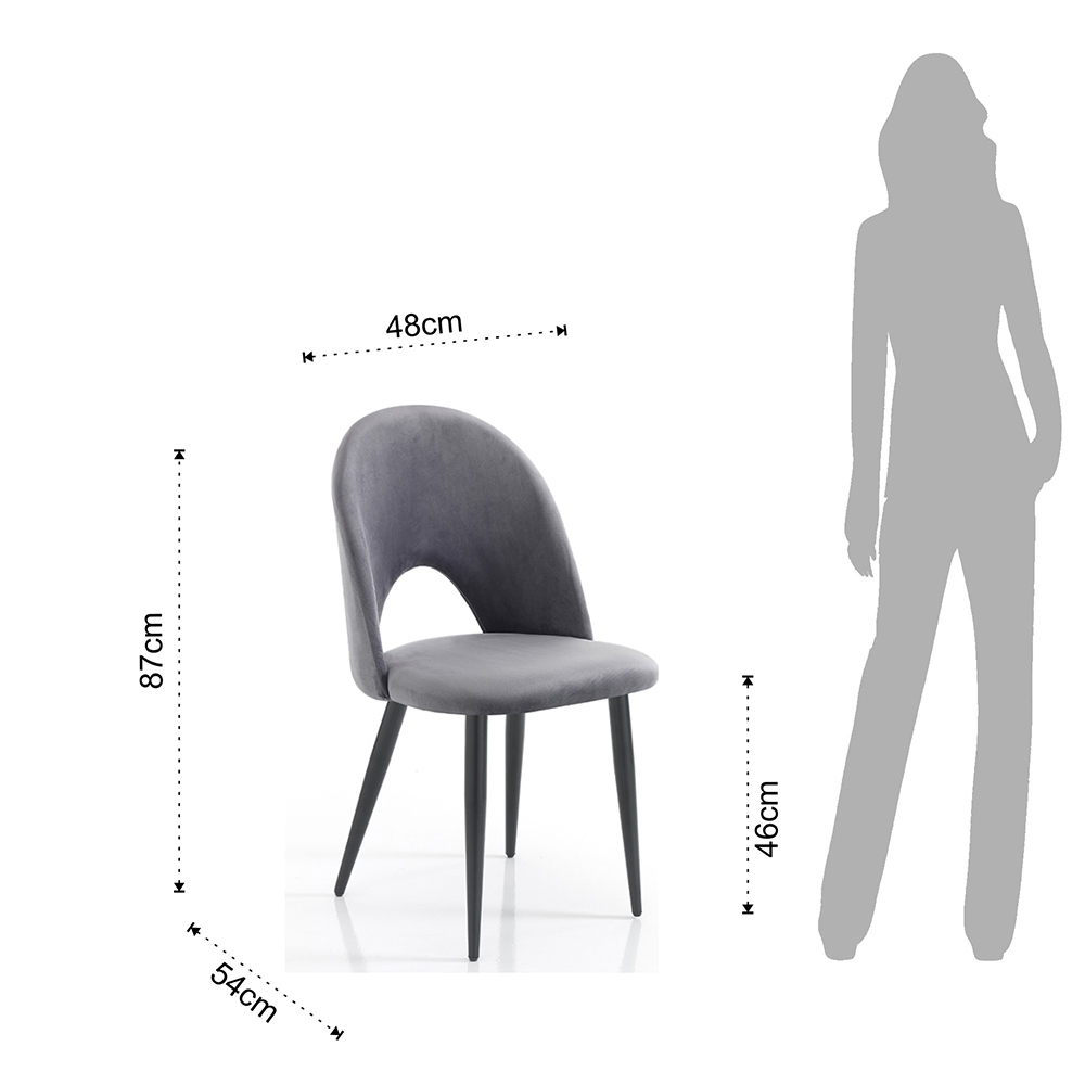 Kitchen chair in velvet effect fabric and painted metal, 4 pieces.