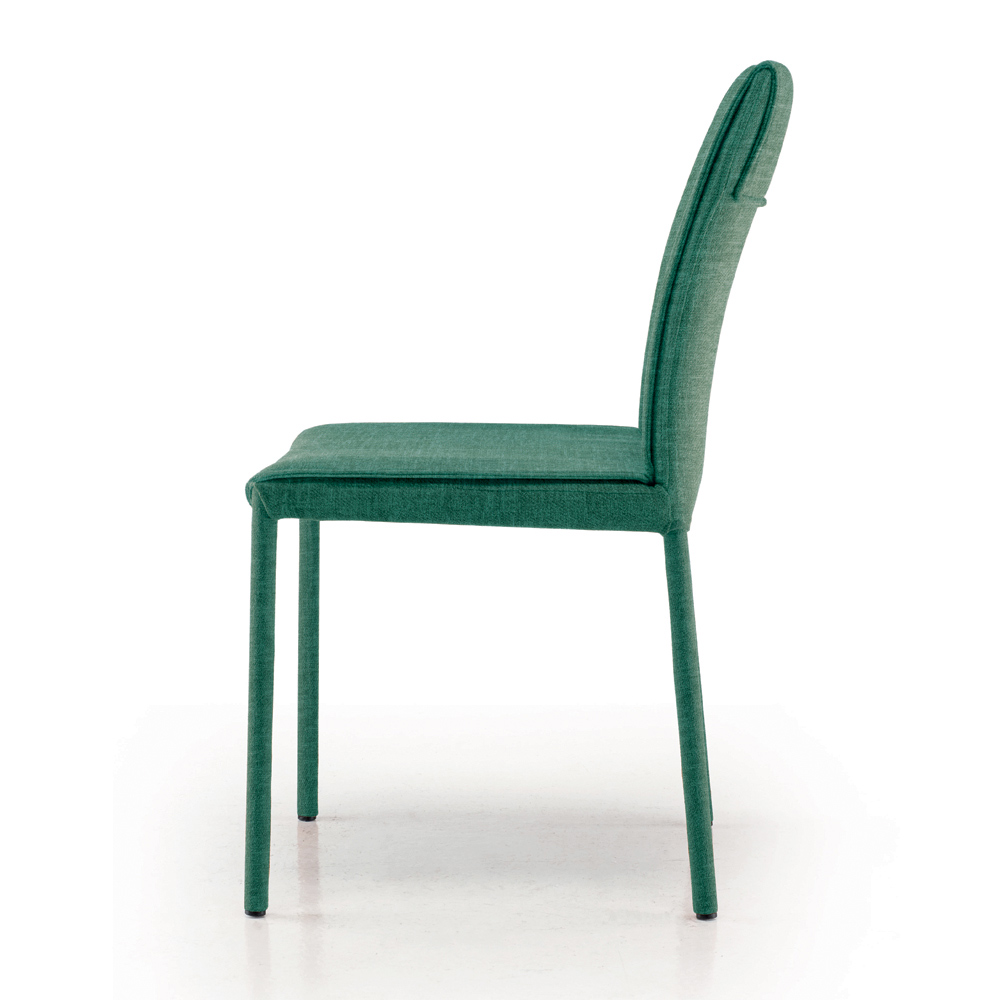 Kitchen chair made in Italy with steel structure and legs, fully padded and covered in fabric . A simple and linear design that adapts perfectly to any stylistic situation, creating a wonderful harmony with the surrounding furnishings for a refined and cutting-edge result . The essentiality of its aesthetics represents the true strong point of this chair, making it particularly versatile while the proposed colors offer the possibility of giving color and personality to your spaces, thus creating an ideal furnishing solution for those looking for a unique and at the same time the functionality of a comfortable and welcoming seat .
