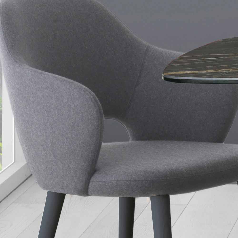 Kitchen chair made in Italy Ā with steel body structure, molded in cold-foamed polyurethane covered in fabric and wooden base with matt ash finish. An aesthetic with attention to detail that adapts to any modern stylistic situation, enriching the look with an exclusive and refined touch while ensuring a welcoming seat . An idea of modern and versatile furniture that comes from the desire to create a product that can increase the joy of hosting and sharing one's time thanks to a comfortable and enveloping design .
