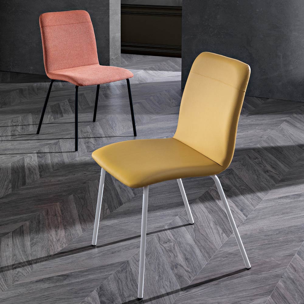 Transform your kitchen or dining room into a more comfortable and elegant space with the modern monocoque chair with seat covered in Anti-shape Yara eco-leather available in different color variations: