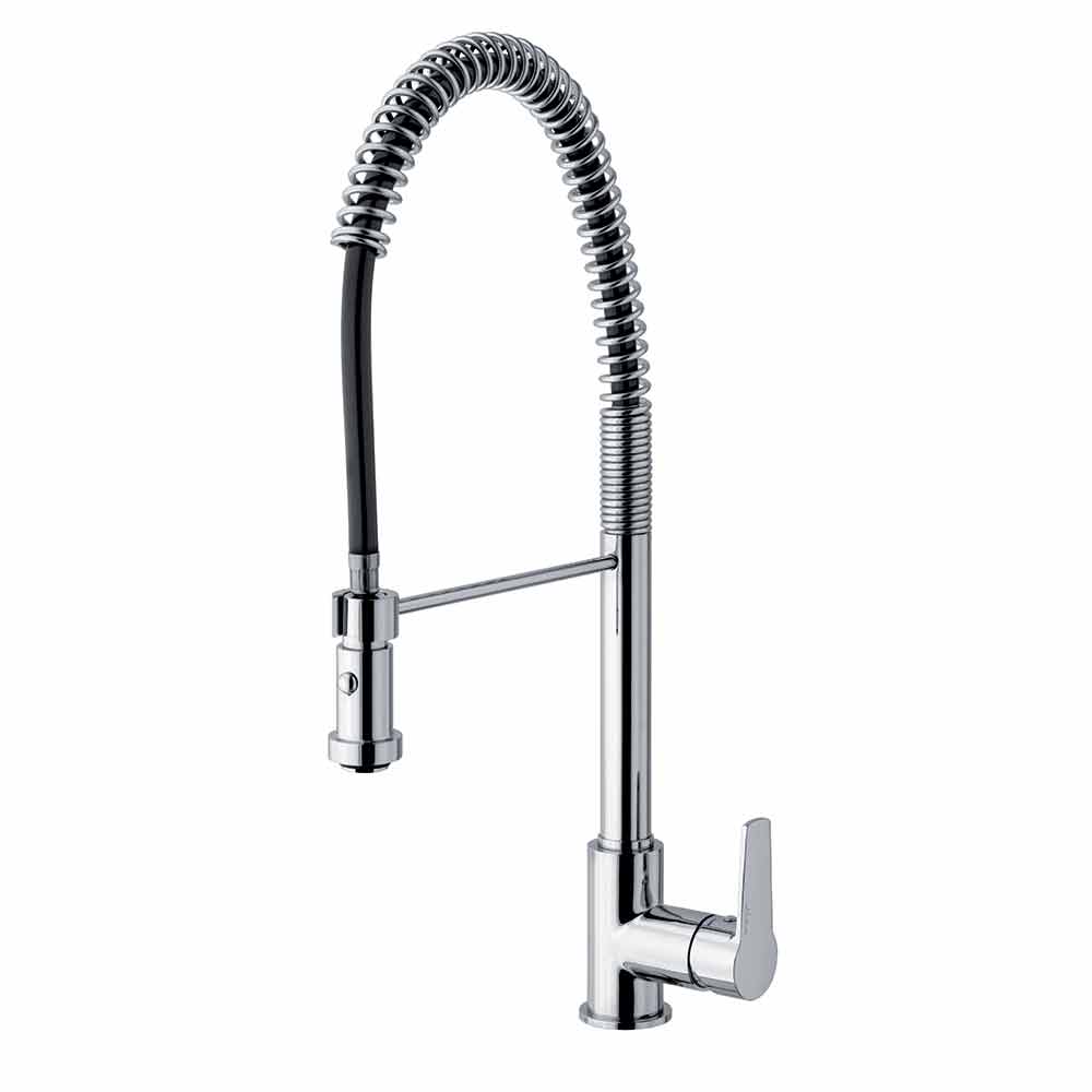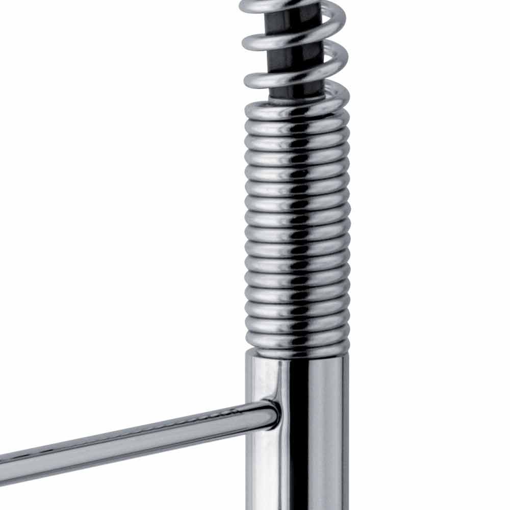 Made in Italy kitchen sink mixer made of chromed brass . Thanks to the adjustable spout with spring and the 2-jet shower, functionality and design come together to give life to the perfect product for a kitchen with a modern and innovative look without neglecting an extremely simple and practical use. What increases the value even more is the presence of a cartridge defined ES capable of supplying cold water when the lever is raised to the central position, avoiding the need for hot water from the boiler and thus allowing substantial energy savings.