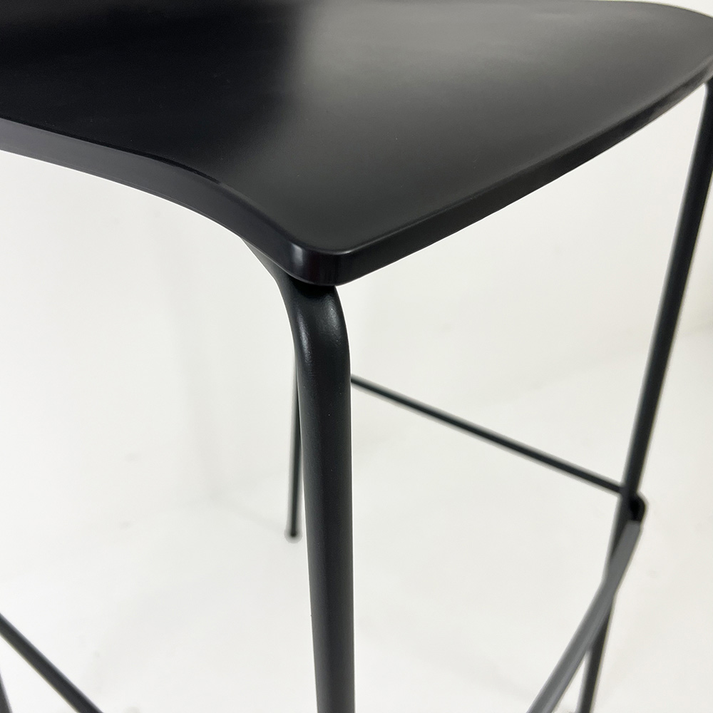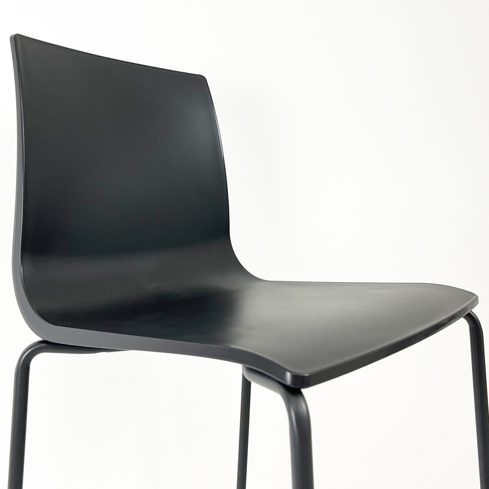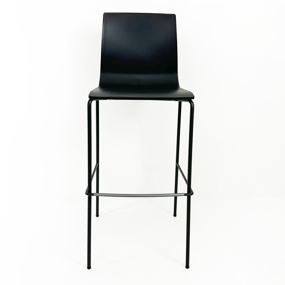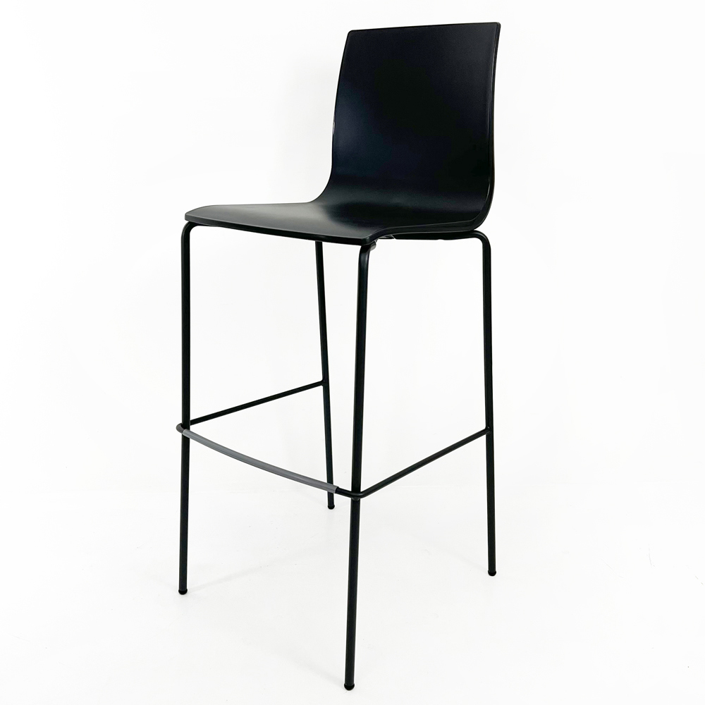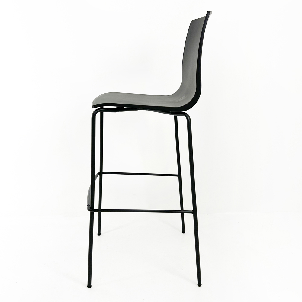 Modern stool Made in Italy composed of a recyclable technopolymer shell with anthracite finish and a 4-legged structure with a tubular steel footrest in the same colour as the seat. Ā  with a diameter of 16 mm which allows stacking up to a maximum of 4 units.