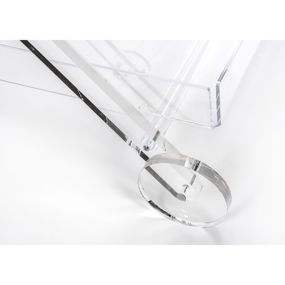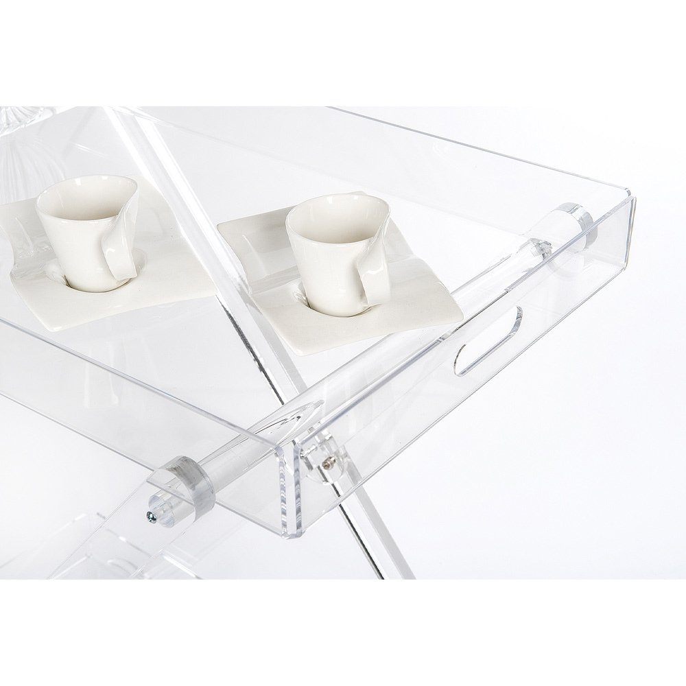 The practical and versatile food trolley , made of 100% PMMA plexiglass from virgin polymer, has a modern and linear design , consisting of 2 shelves that make it very useful as an auxiliary trolley in the home environment. A complement in which aesthetics meets functionality.