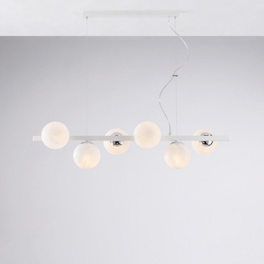 Available in refined White/Chrome or Black/Bronze finishes, this pendant fits naturally into modern living rooms , dining rooms , kitchen islands , open spaces , and designer contract environments . A lighting element that reflects the quality of Made in Italy craftsmanship and attention to detail.