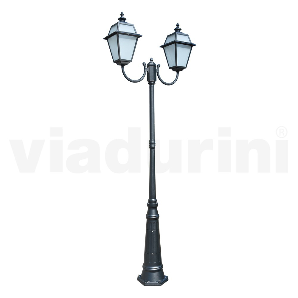 Vintage 2-light lamppost in aluminum and glass Made in Italy.