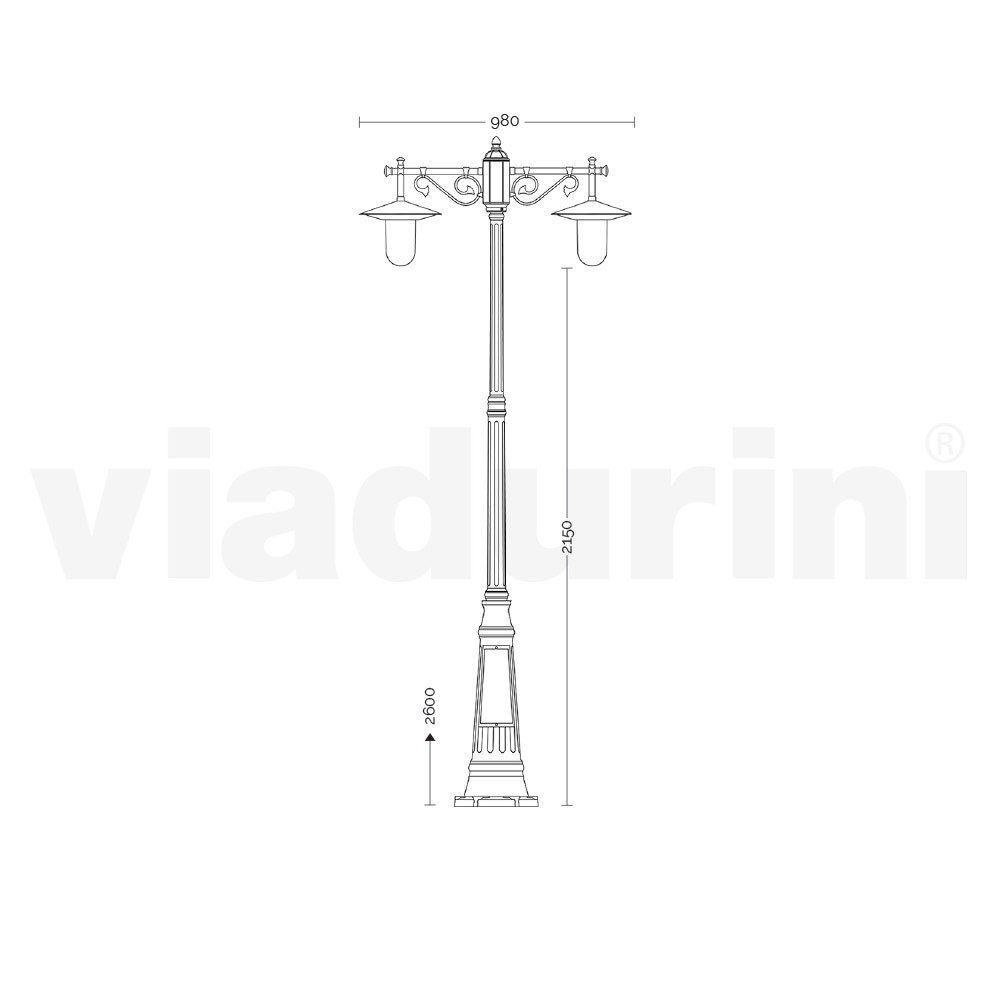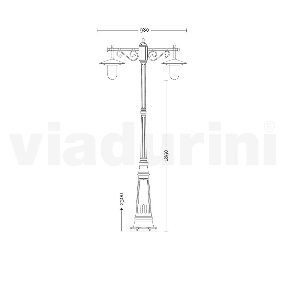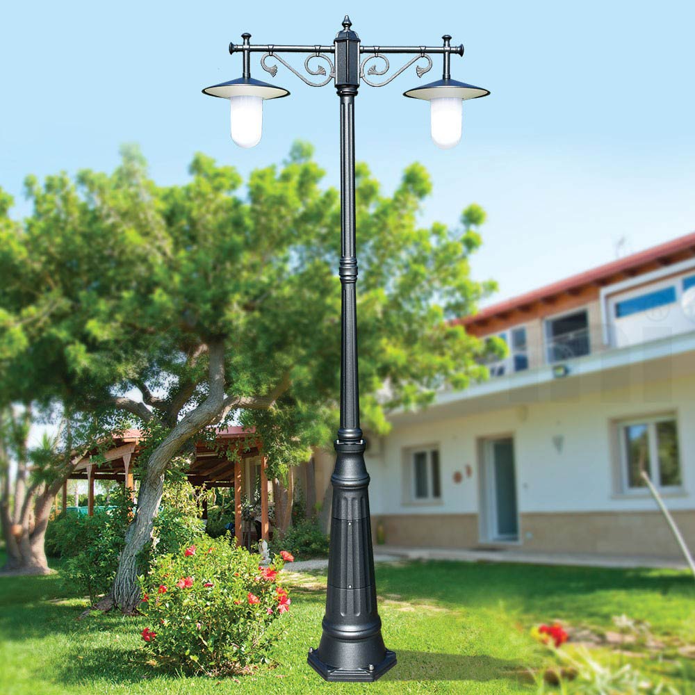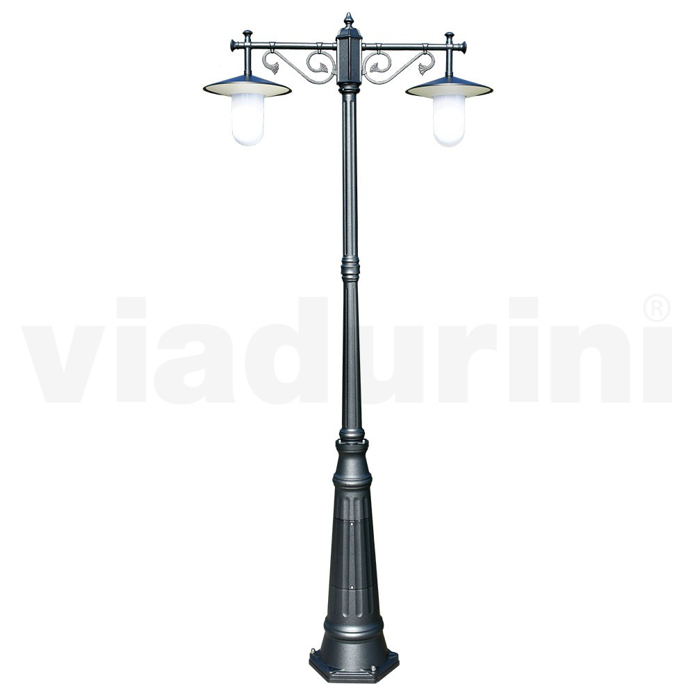 Vintage style 2-light lamppost in aluminum and polycarbonate Made in Italy.