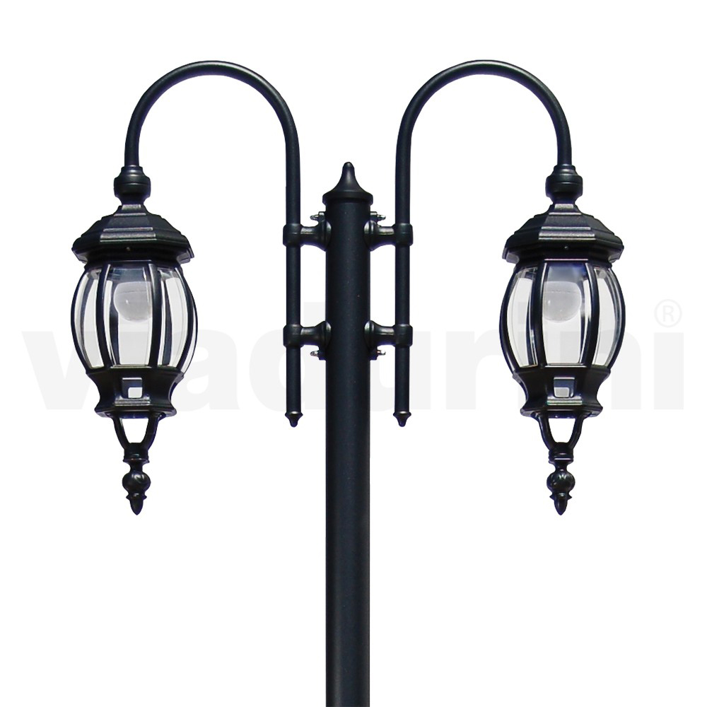 Vintage street lamp 2 lights in anthracite aluminum and polycarbonate Made in Italy.