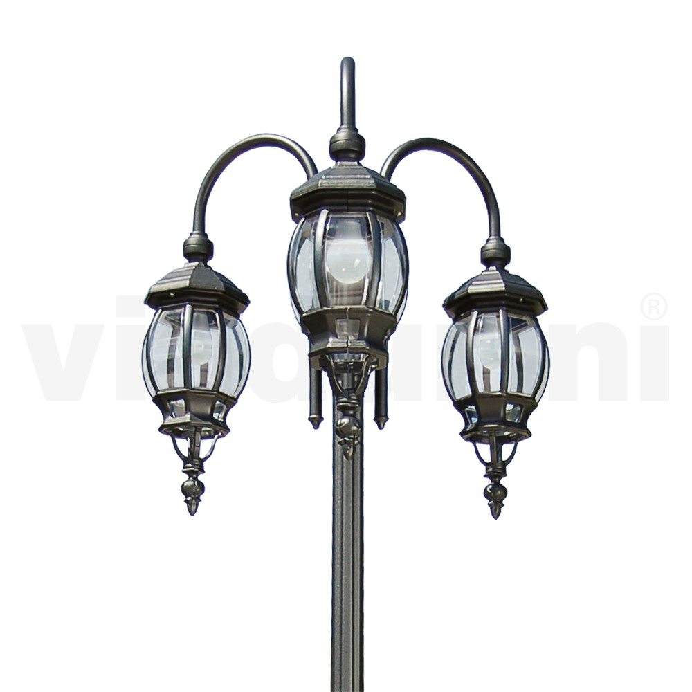 3-light vintage style street lamp in anthracite aluminum and polycarbonate Made in Italy.