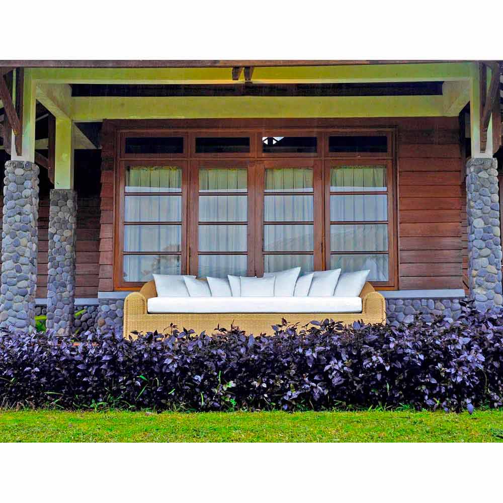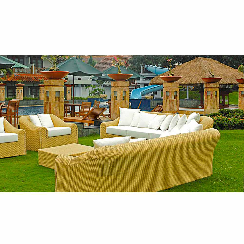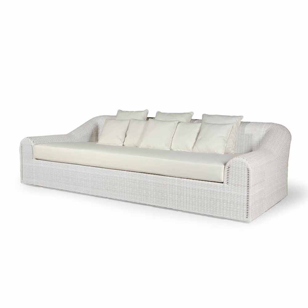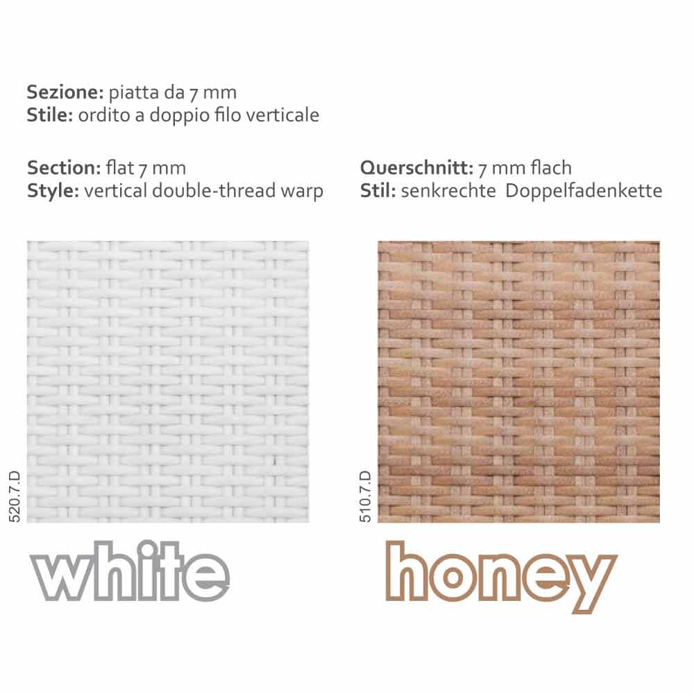 Garden sofa with aluminium frame covered with 7 mm thick flat polyethylene, available in the shades white or honey.