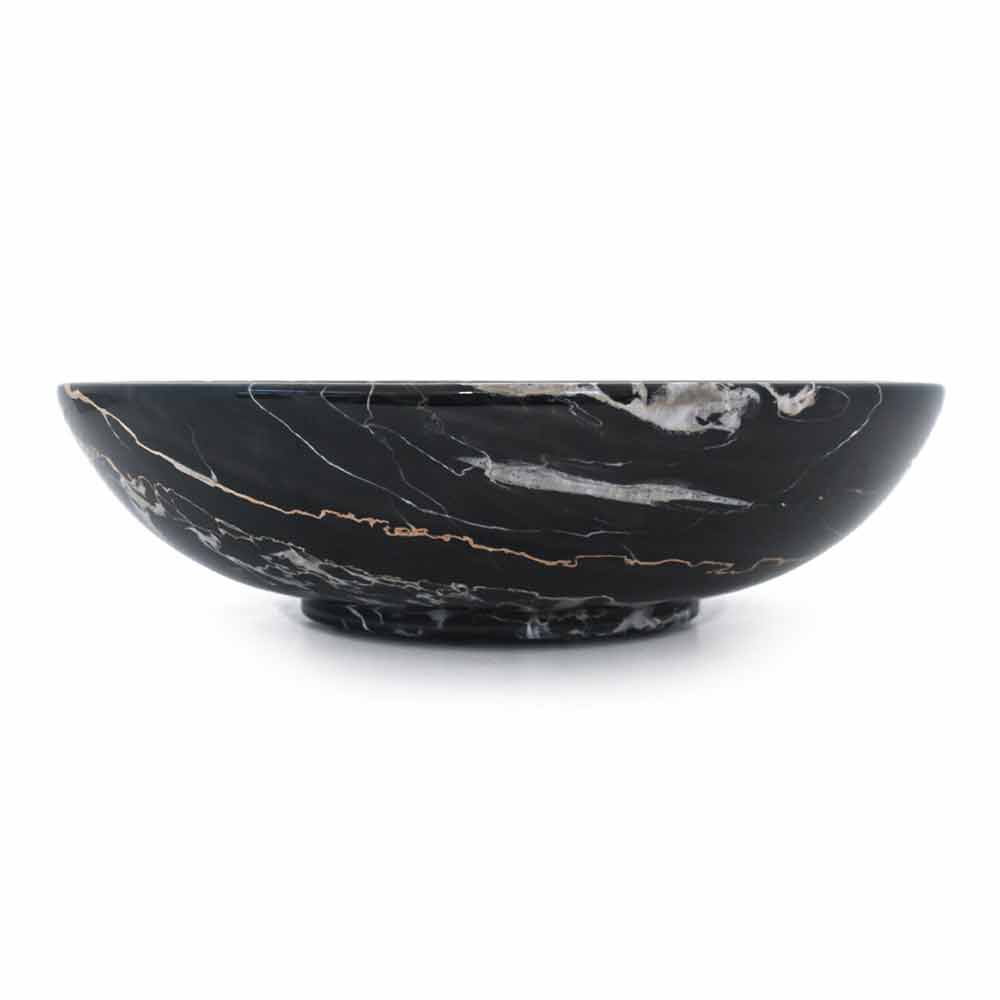 Elegant large round fruit bowl Ā it is characterized by the precious marble with which it is made. It is a unique piece as each block of marble used differs from the others for veins and shades. Available in two variants of marble, Portoro and Paonazzo, Glacer is handcrafted by professionals specialized in marble processing for generations.