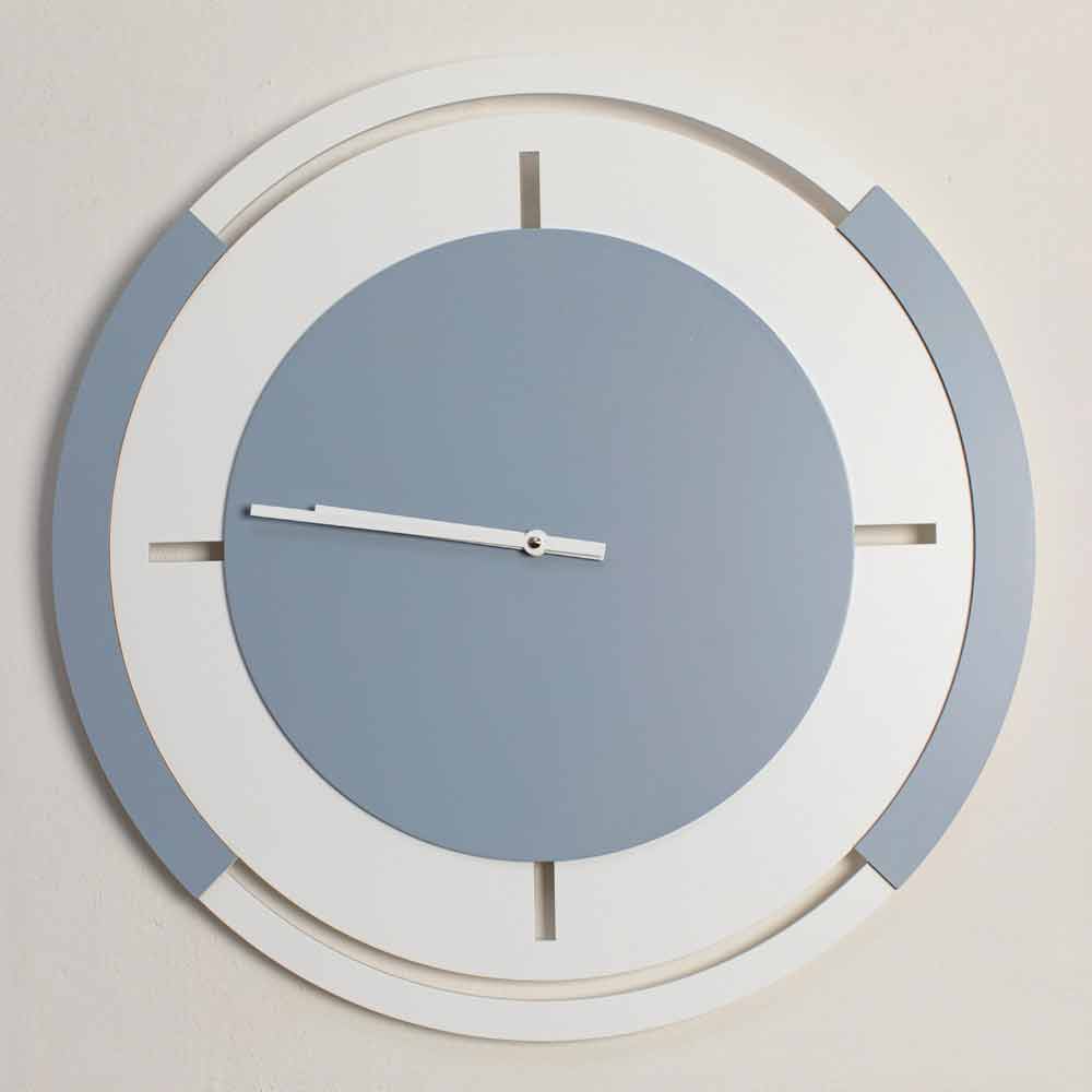 round clock is a classic that combines white with air force blue, for a combination of colors and shapes that together form something unique.