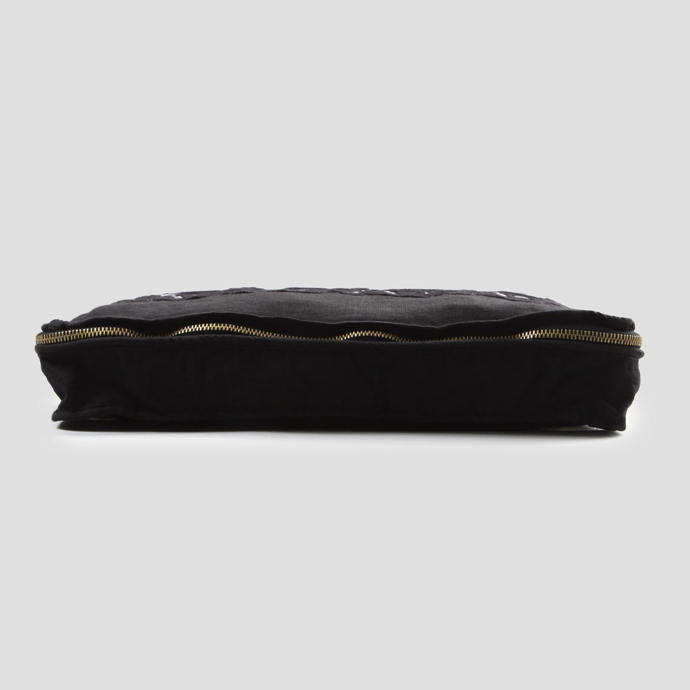 Rectangular linen and cotton cosmetic bag with zipper and Farnese lace, made in Italy.