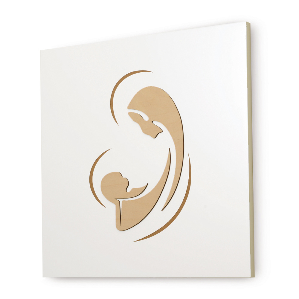 All the sweetness of the Madonna who embraces and looks at her child is contained in this sacred and religious representation. The simple and essential finishes highlight this emotion and feeling and the choice of color combinations allows you to satisfy all design needs.