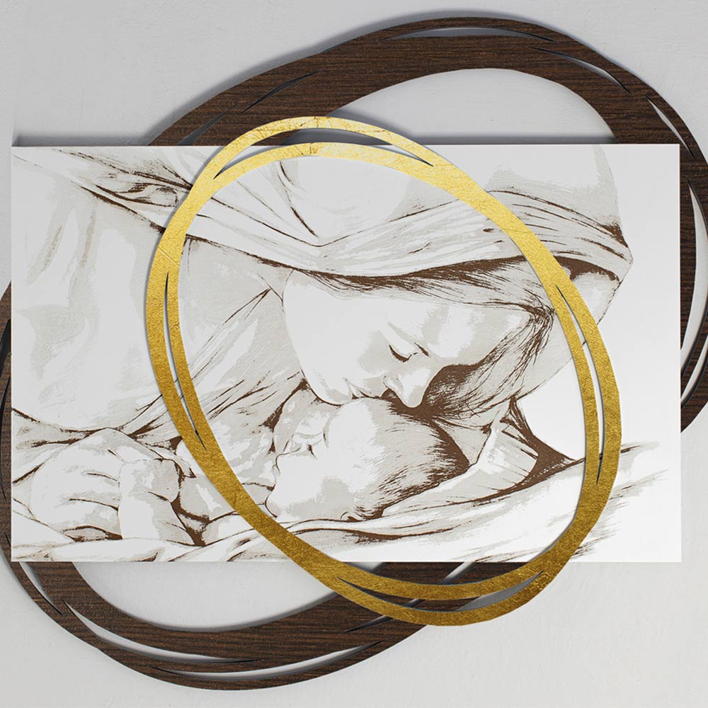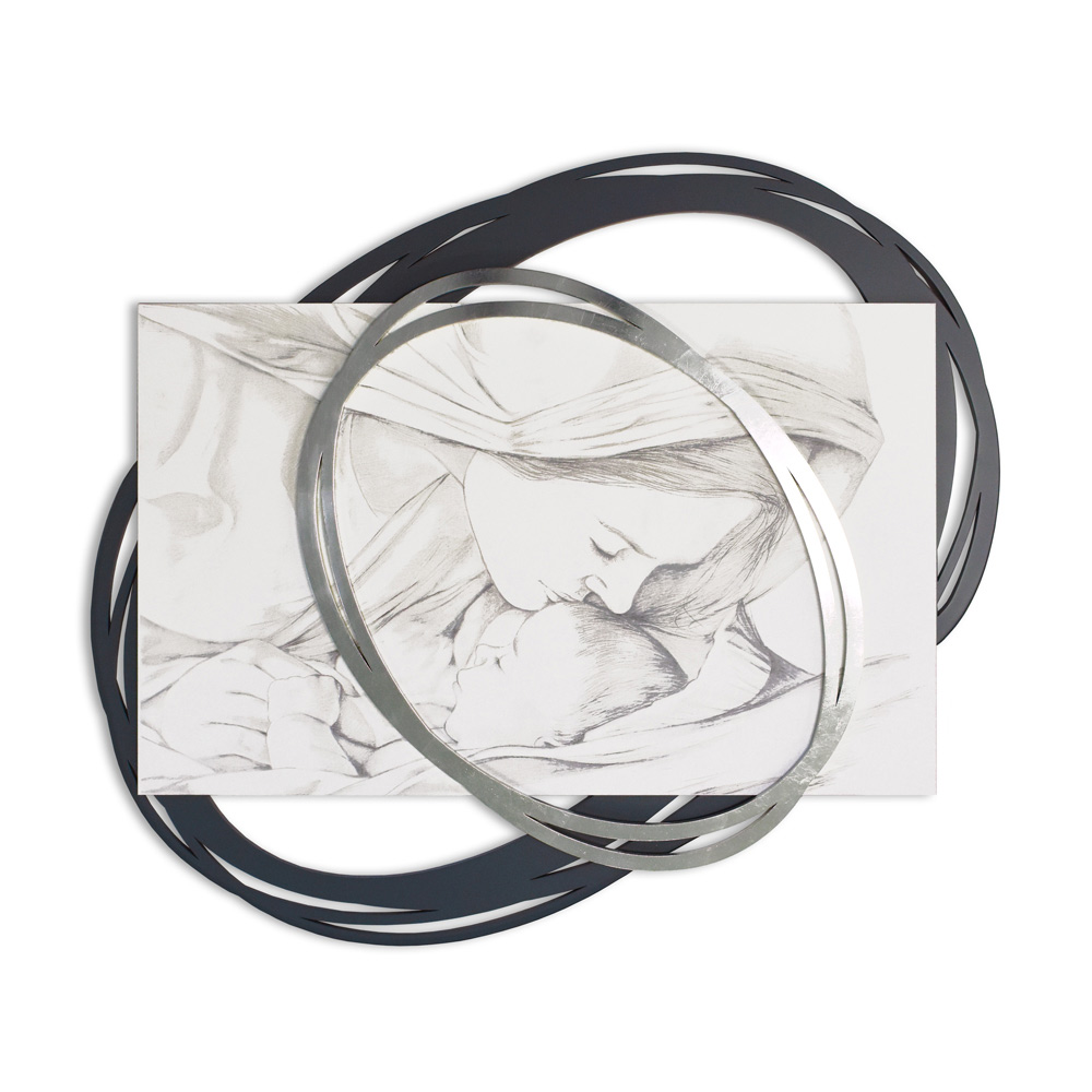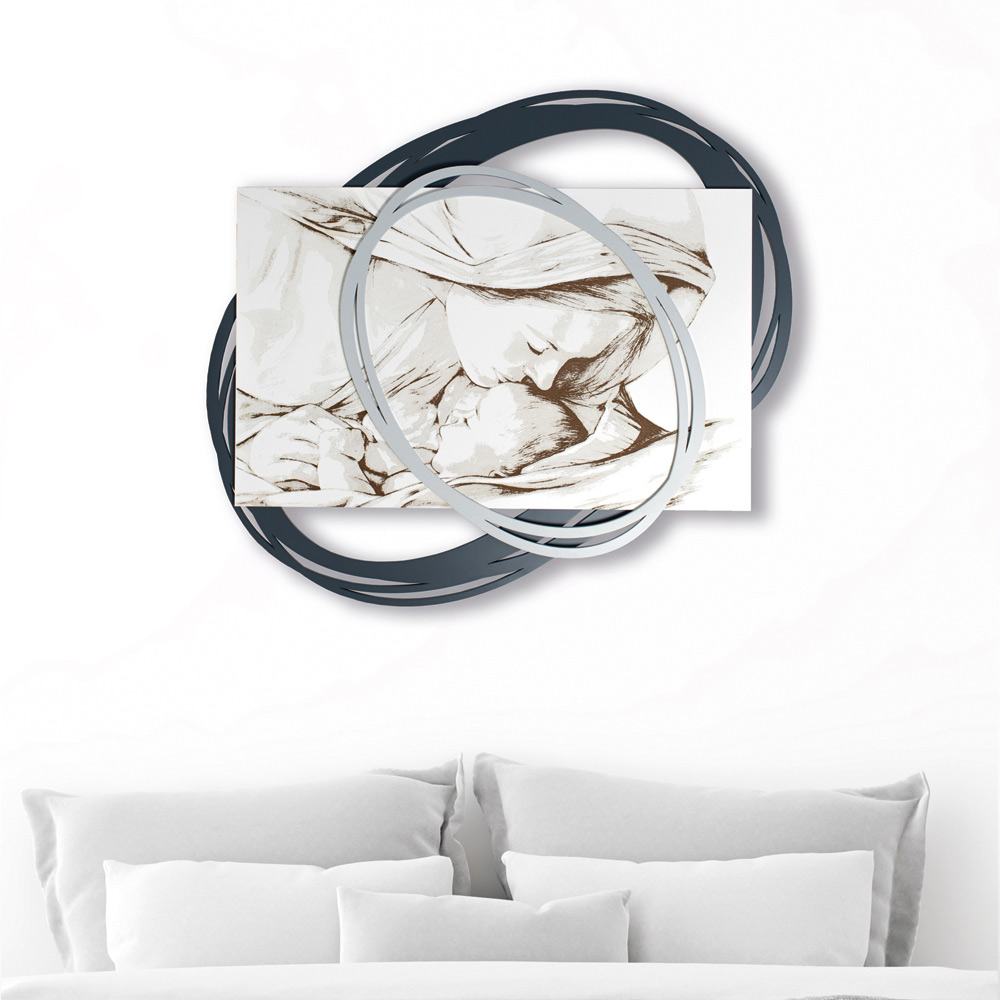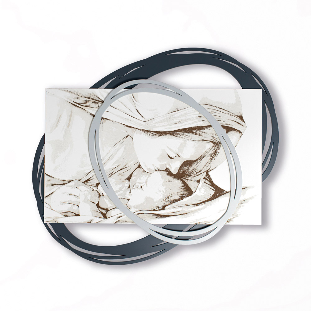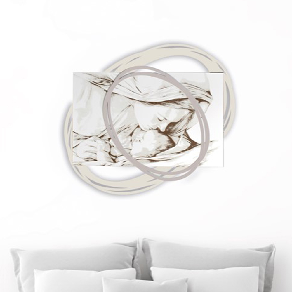 This painting was designed to maximize the tenderness of the kiss that the Madonna gives to Jesus. Simple but precise lines are born from the hands of Italian master craftsmen who have created this design with care and dedication, making it unique and inimitable. This headboard combines the quality of materials and techniques with the possibility of choosing the finishes that best suit every design need.