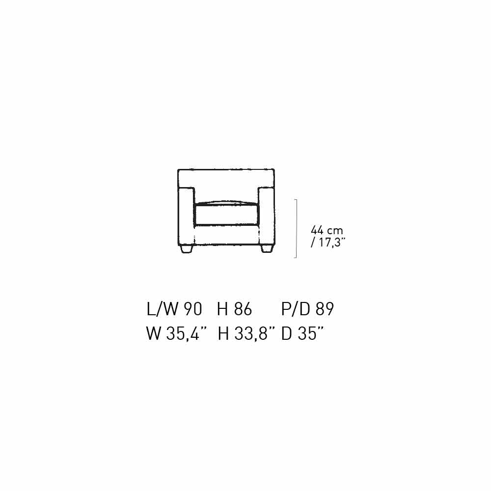 Armchair with internal wooden structure padded with polyurethane foam and polyester fiber lining, seat cushion in sterilized goose down,