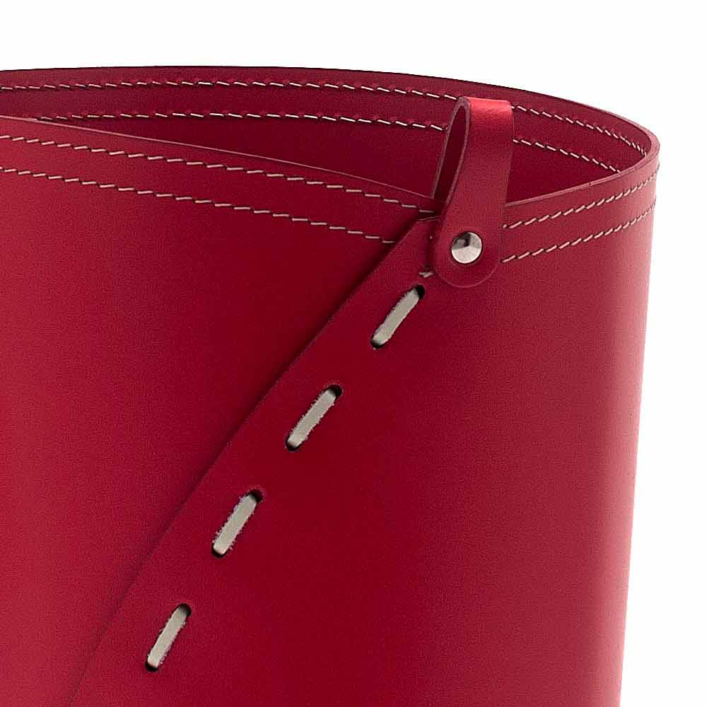 Servus is handcrafted with fine regenerated leather, both inside and out. The bottom is in plywood, also covered in leather.