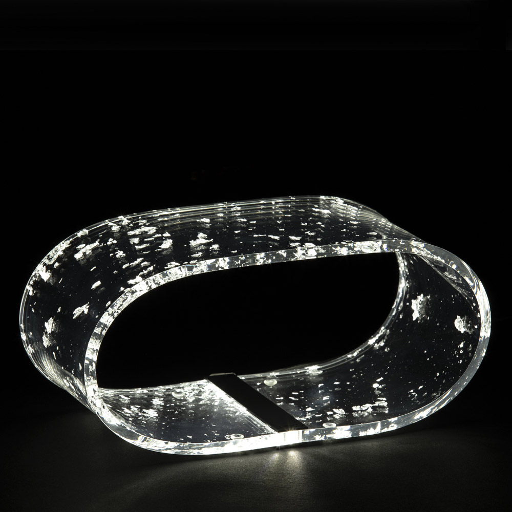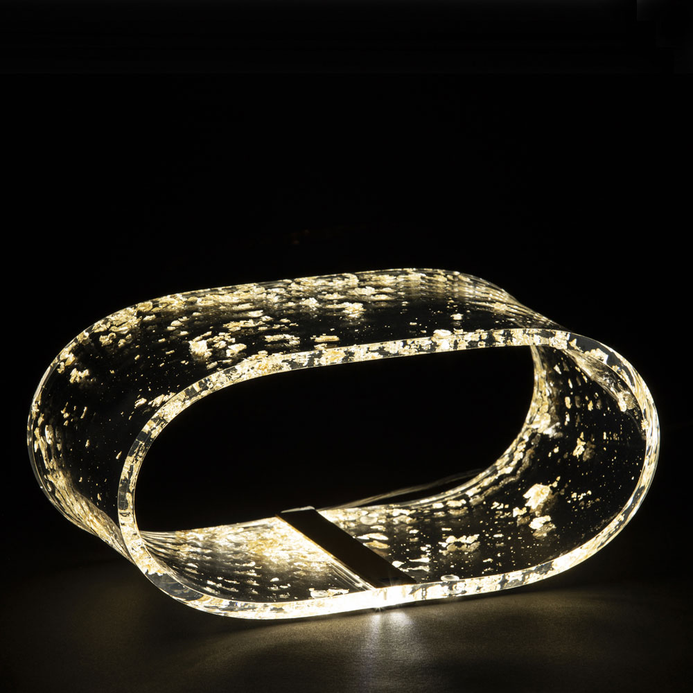 Table lamp in acrylic crystal and gold, silver or copper leaf, 2 sizes made in Italy.