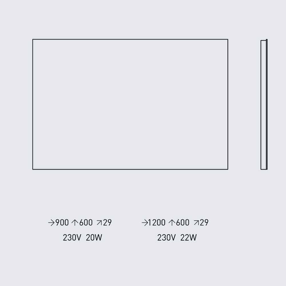 Rectangular backlit design wall mirror with LED light and steel frame Made in Italy.