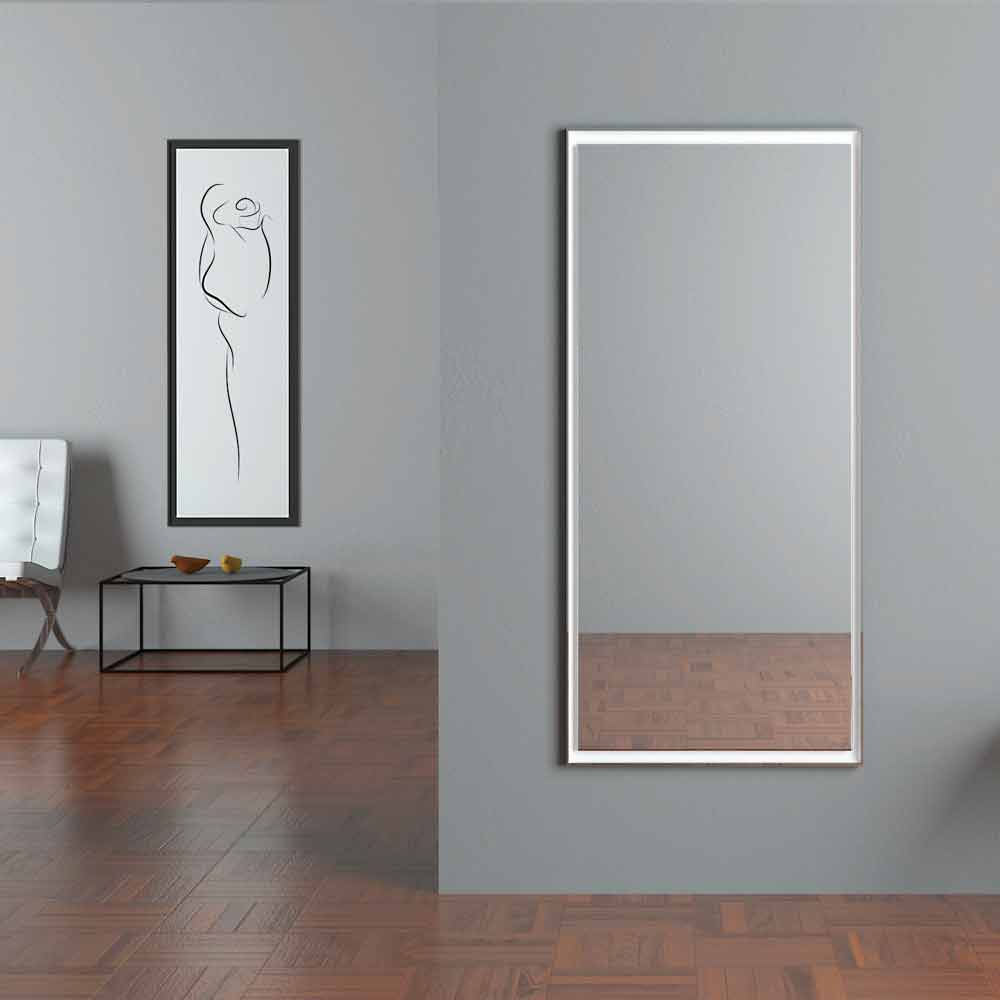 Modern rectangular wall mirror with perimeter lighting Made in Italy.