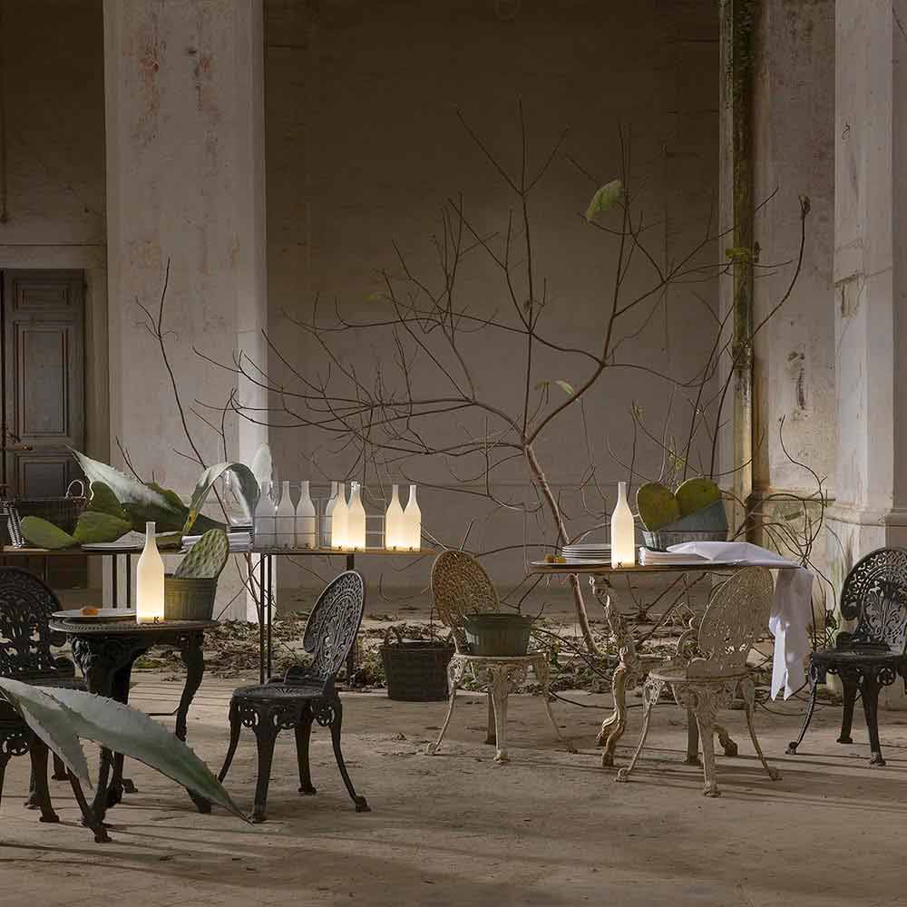 This original and unique table lamp has a refined design in the shape of a bottle with pure and simple lines.