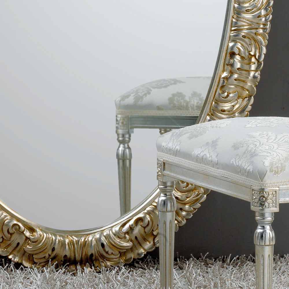 The Life mirror is characterized by a craftsmanship carried out using quality materials and using the experience of skilled Italian artisans. The frame is made of wood. Antique silver leaf finish. Crystal mirror, 4mm thick. Made in Italy. To hang both vertically and horizontally.