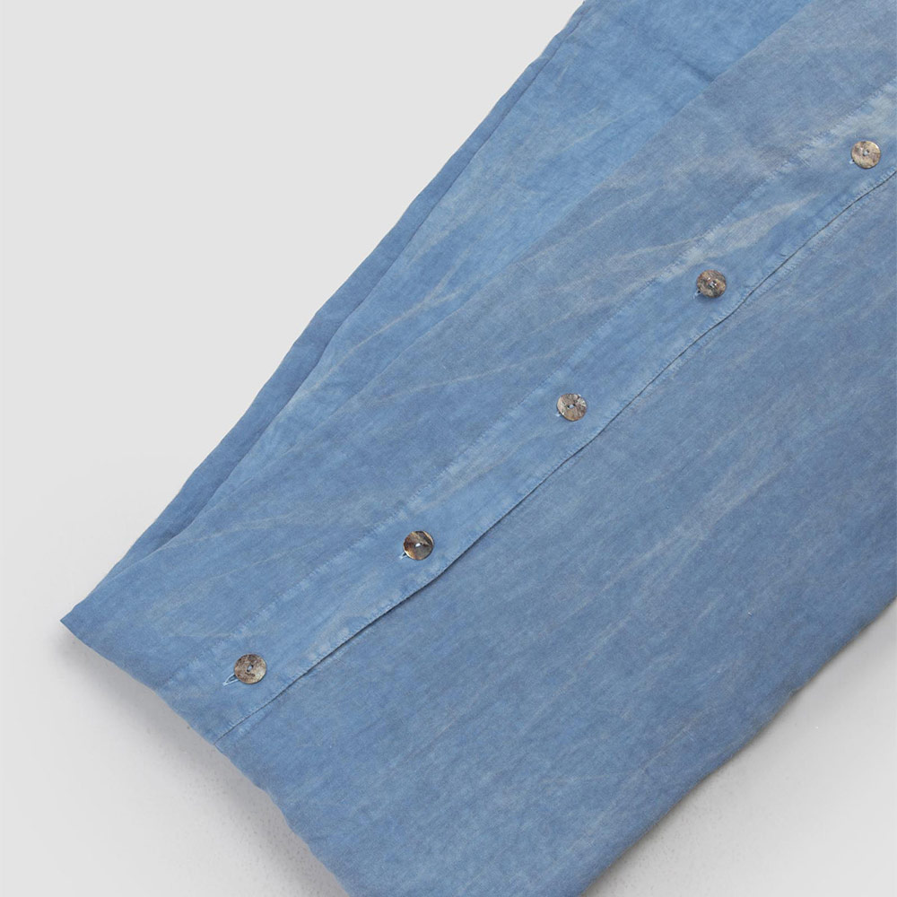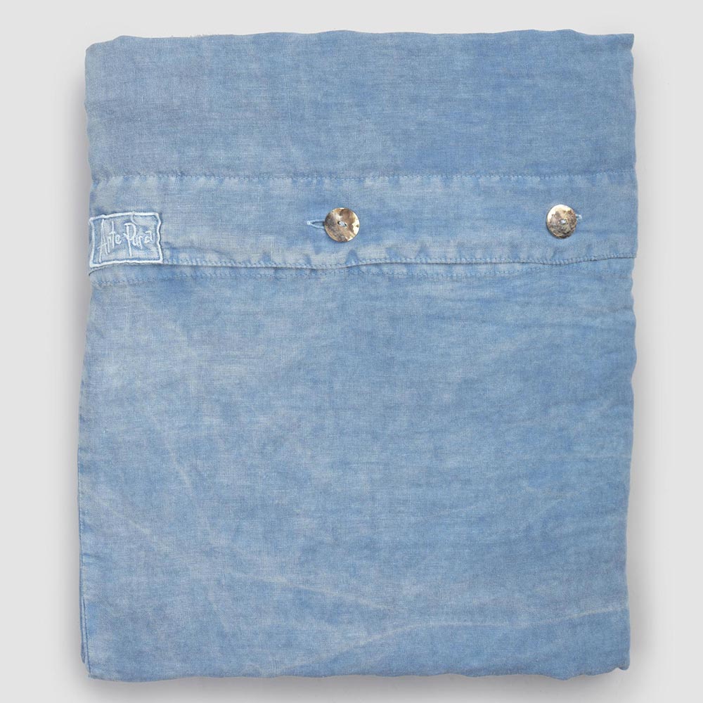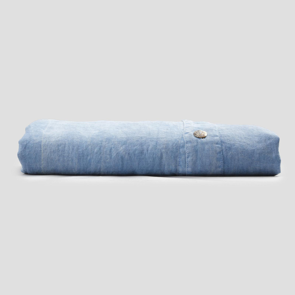 The value of tradition is combined with the modern lifestyle in this light blue linen duvet cover, embellished with mother-of-pearl Agoya buttons and flap.