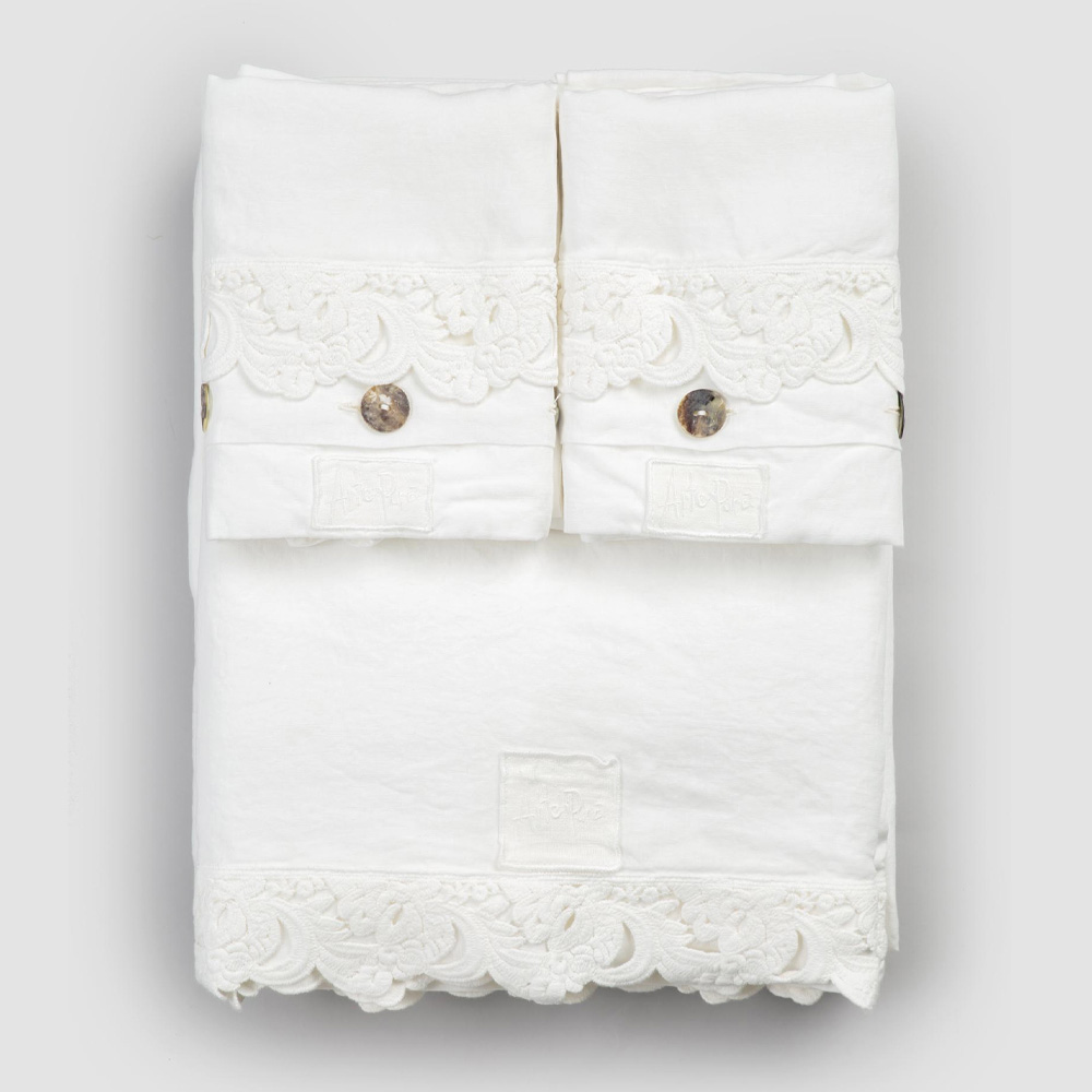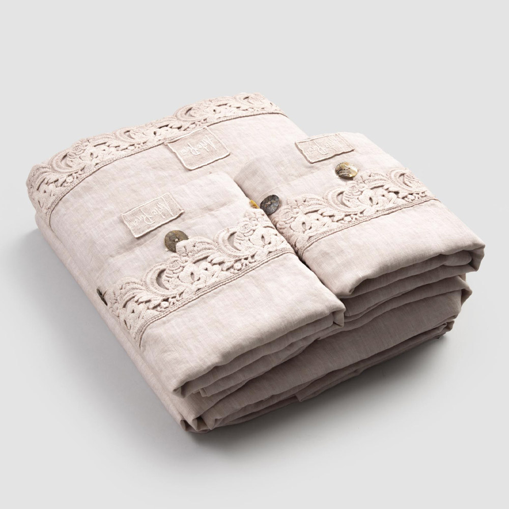 Double bed linen set with harmony lace in two colors, luxury made in Italy.