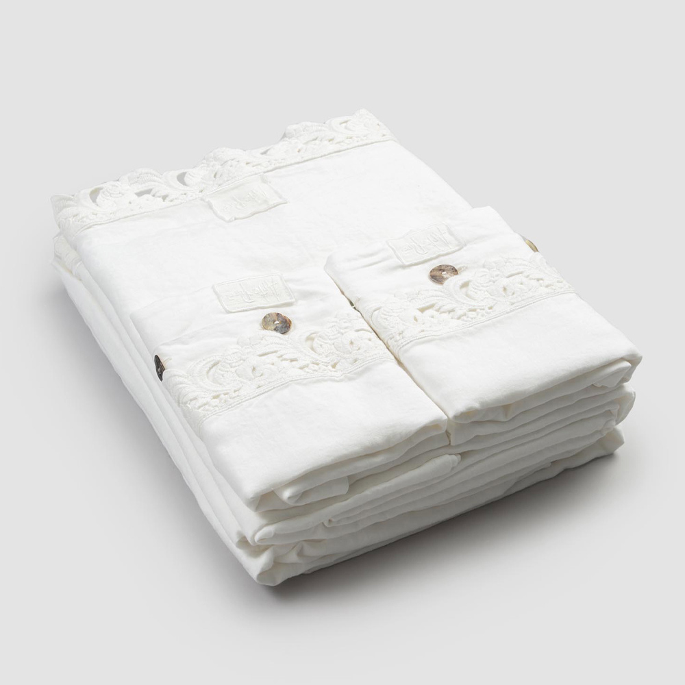 The value of tradition joins the modern lifestyle with this light linen linen set with Armonia lace for the double bed which includes: