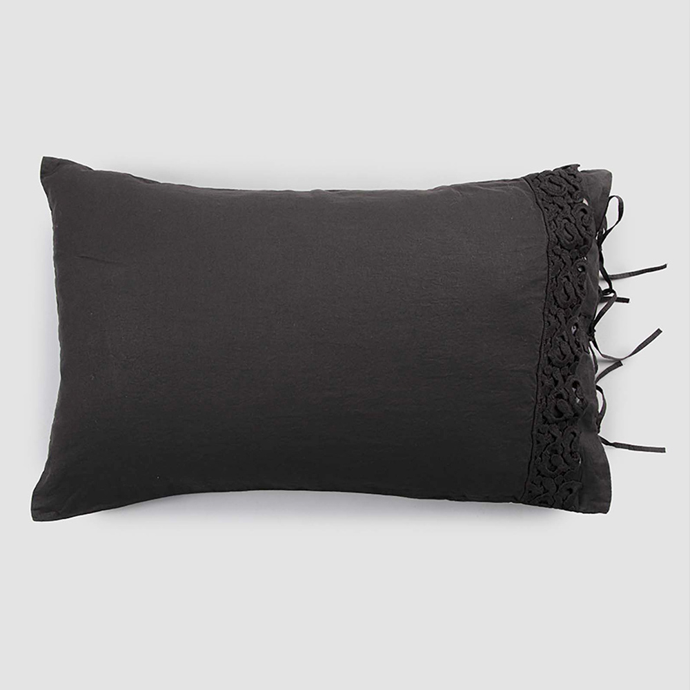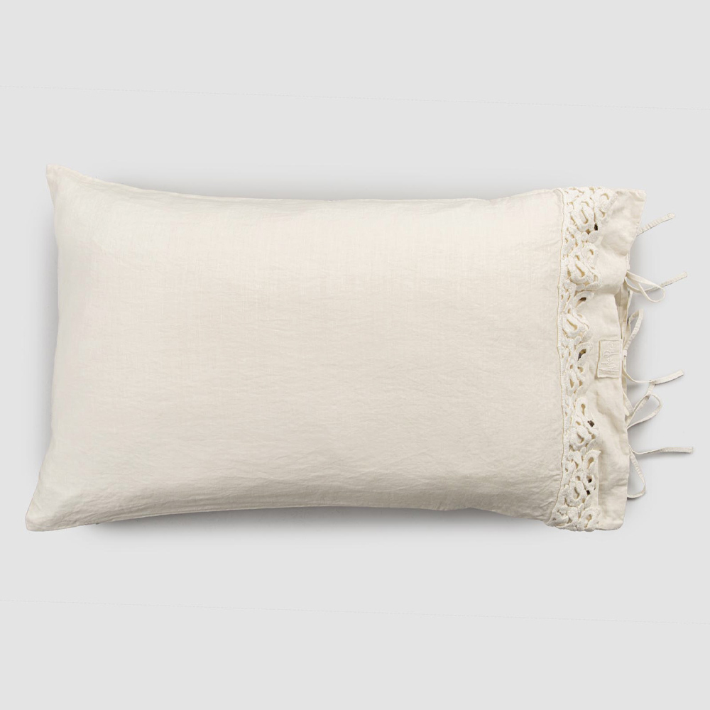The value of tradition joins the modern lifestyle with this lightweight linen pillow case embellished with poem lace and lace closure.