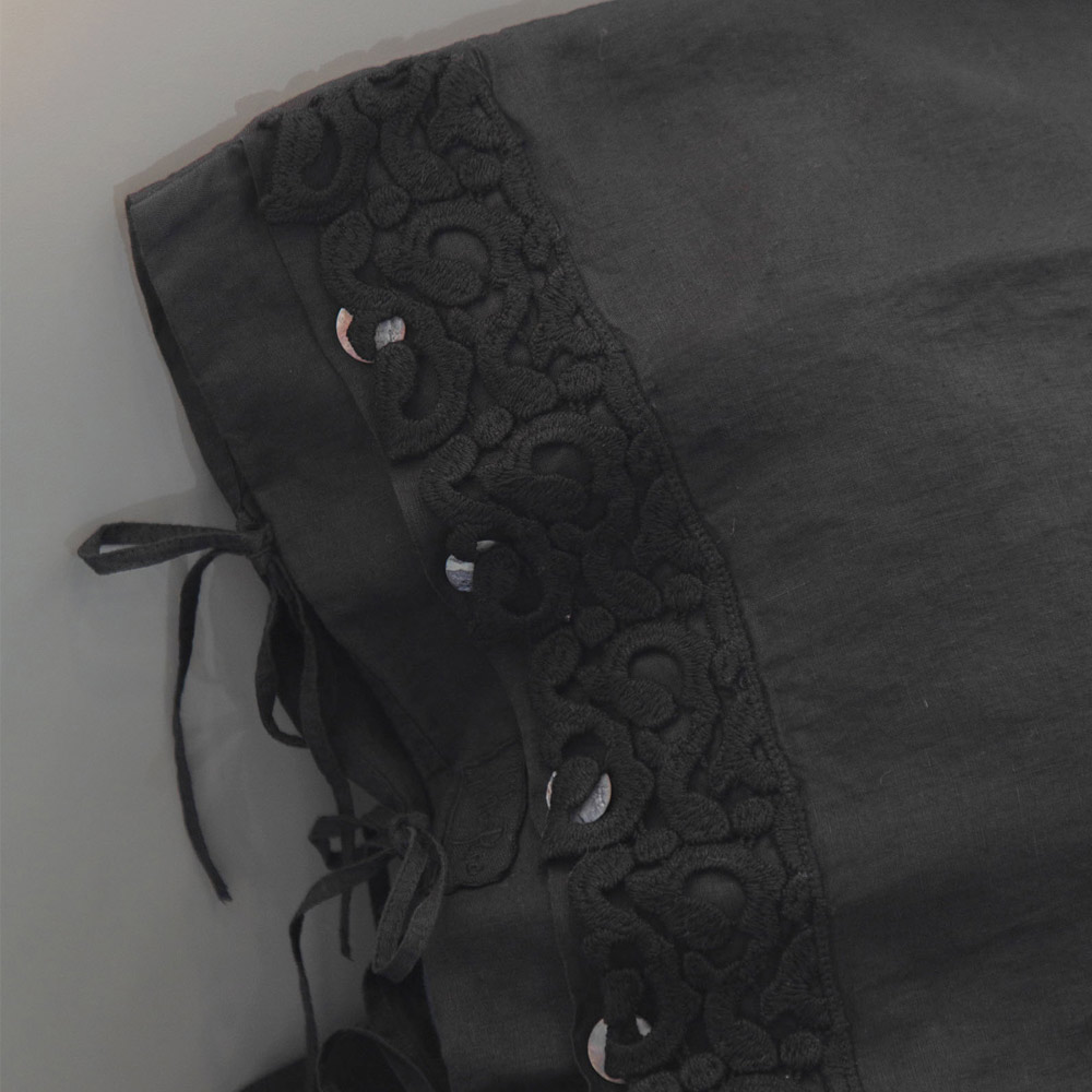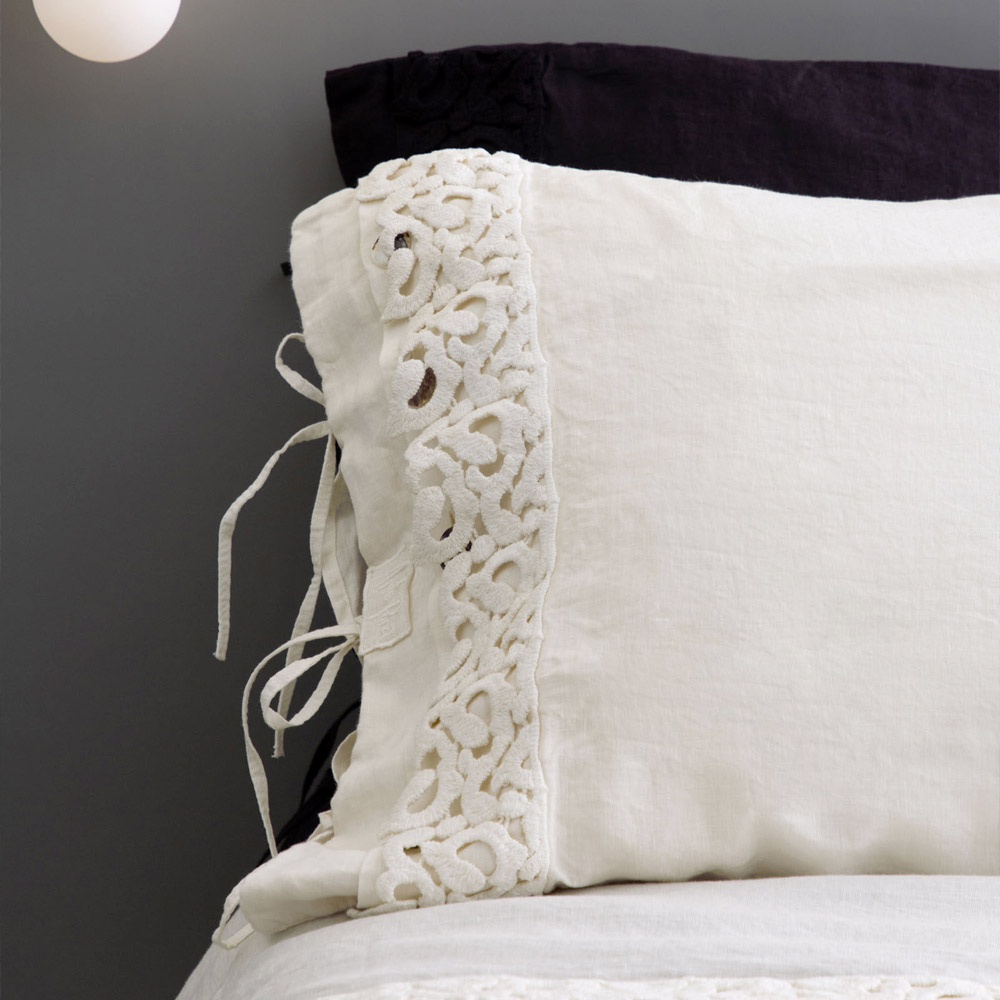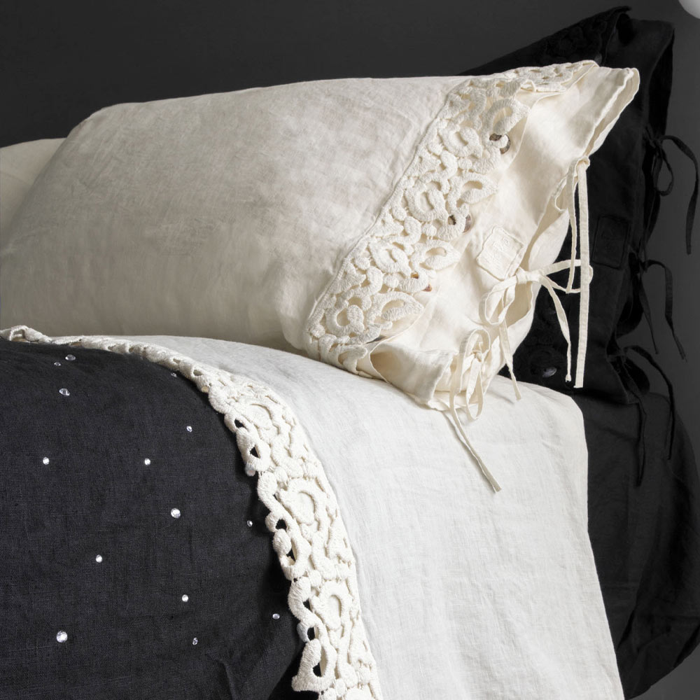 Linen Pillowcase with Poema Lace and Butter or Black Laces Made in Italy - Masone
